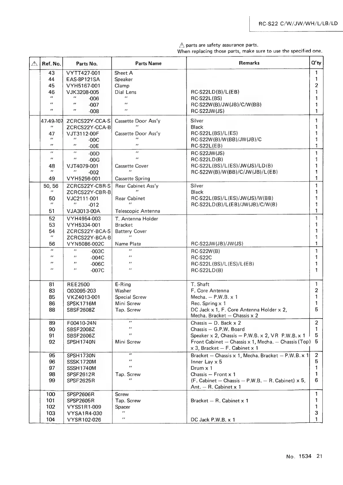 RC-S22L(BS)/L(ES)/JW(JS)/LD(B)