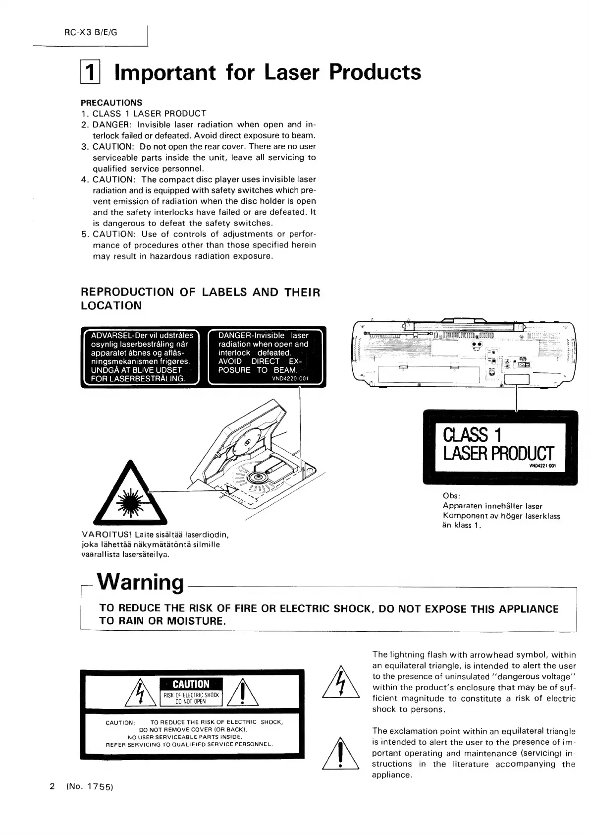 JVC RC-X3 - Important for Laser Products