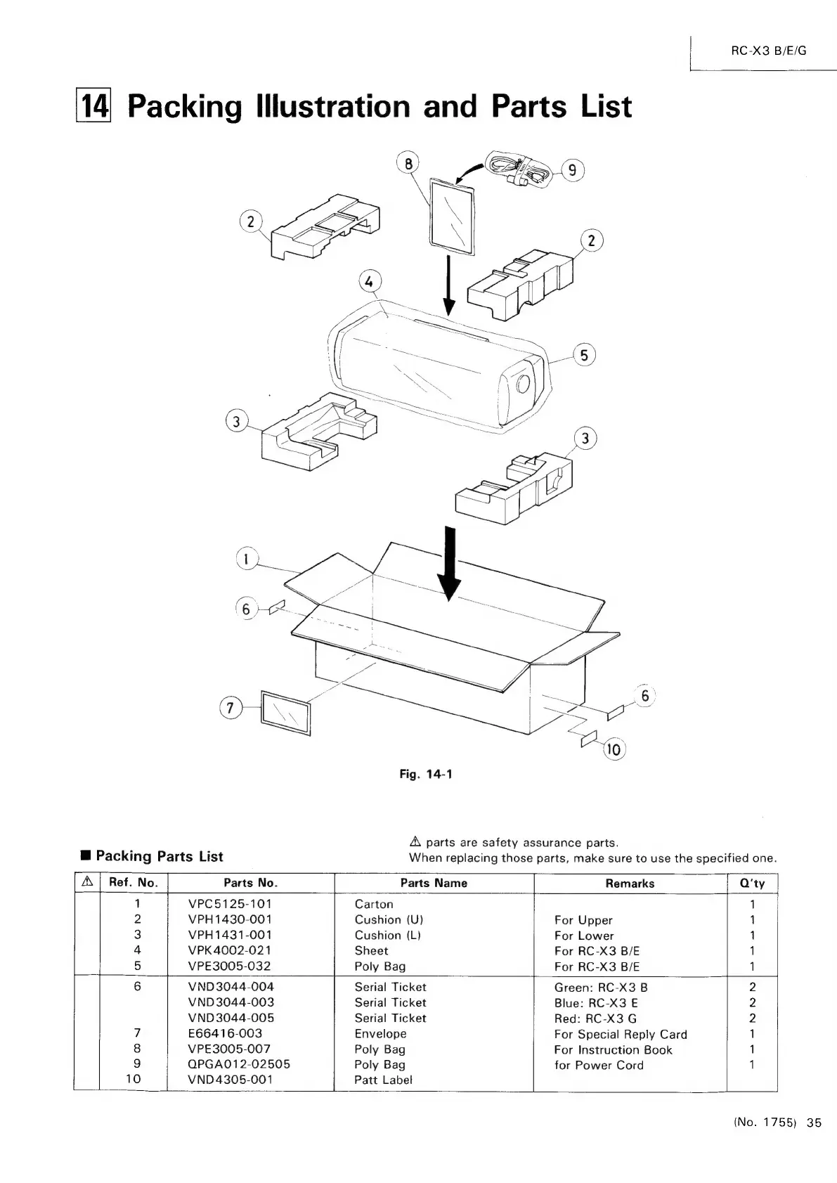 JVC RC-X3 - Packing Illustration and Parts List