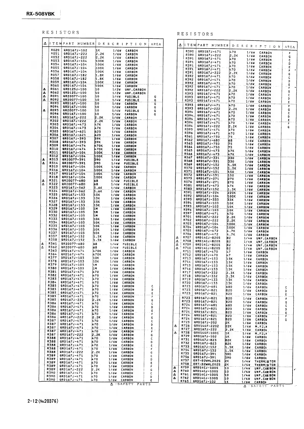 JVC RX-508VBK - Component Lists by Type (Continued); Resistors List