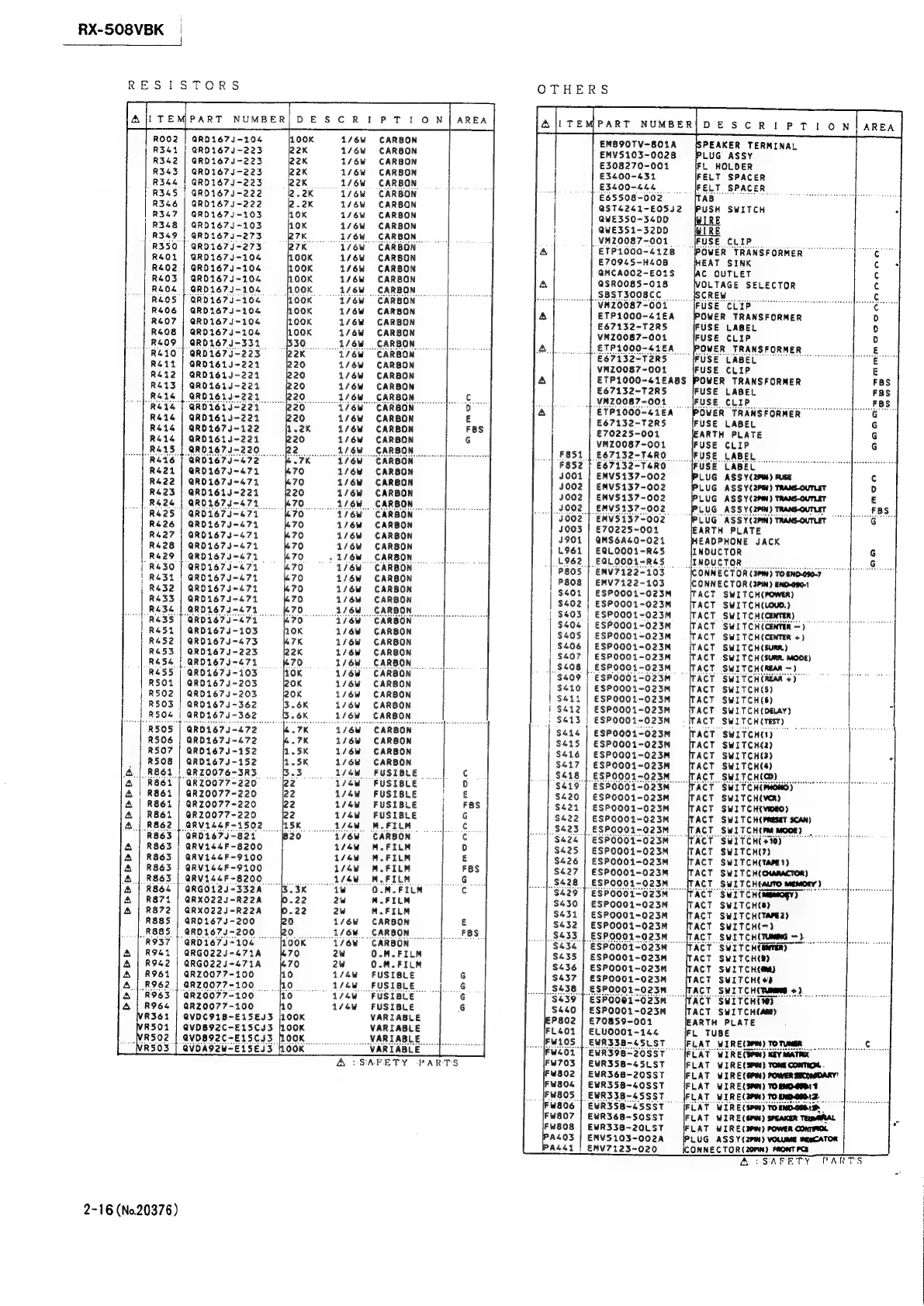 JVC RX-508VBK - Component Lists by Type (Continued); Capacitors List