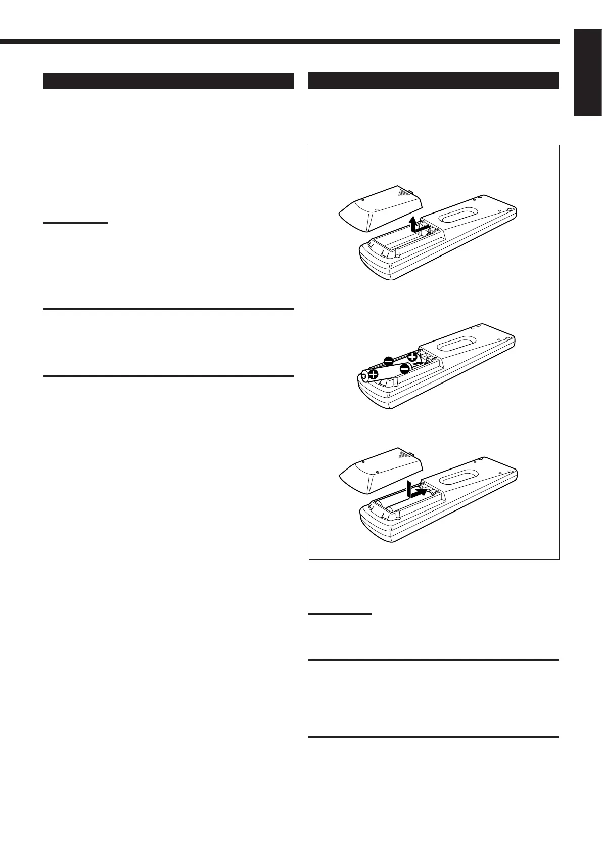• Place batteries in the remote control so they match the polarity: