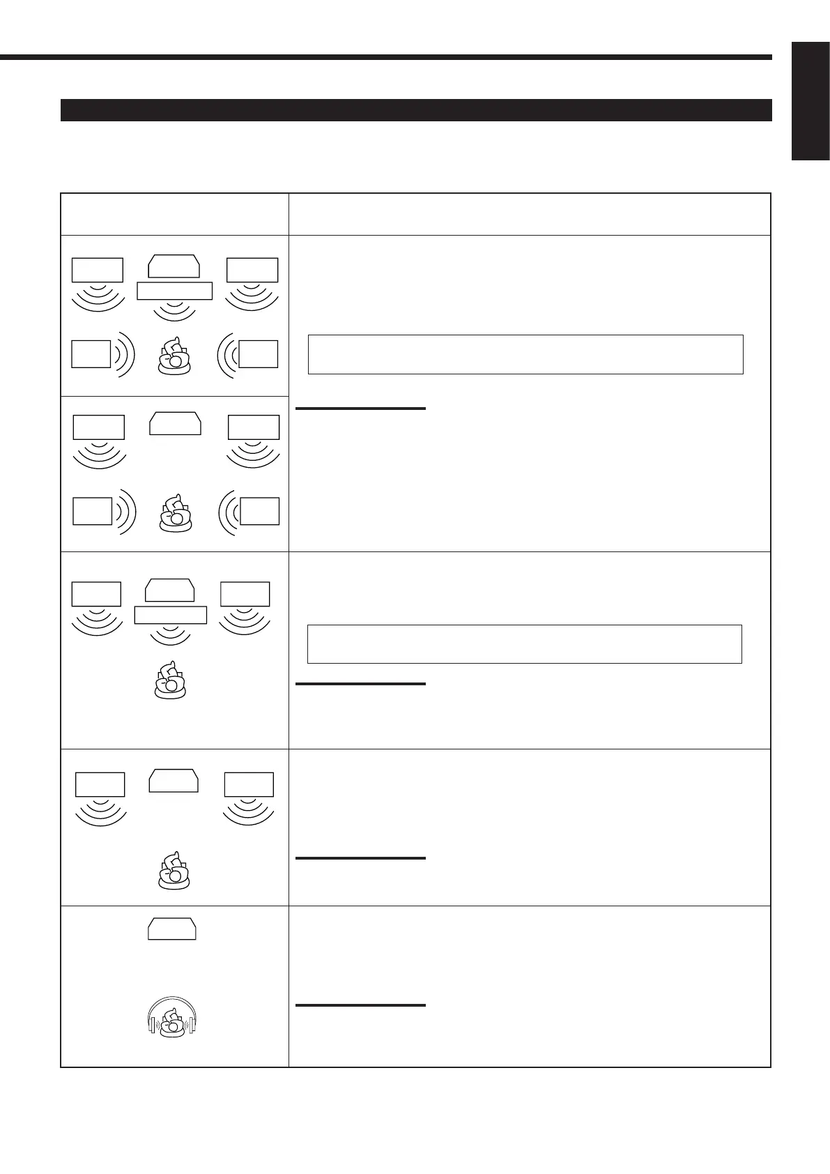Available DSP modes will vary depending on how many speakers are used with this receiver.