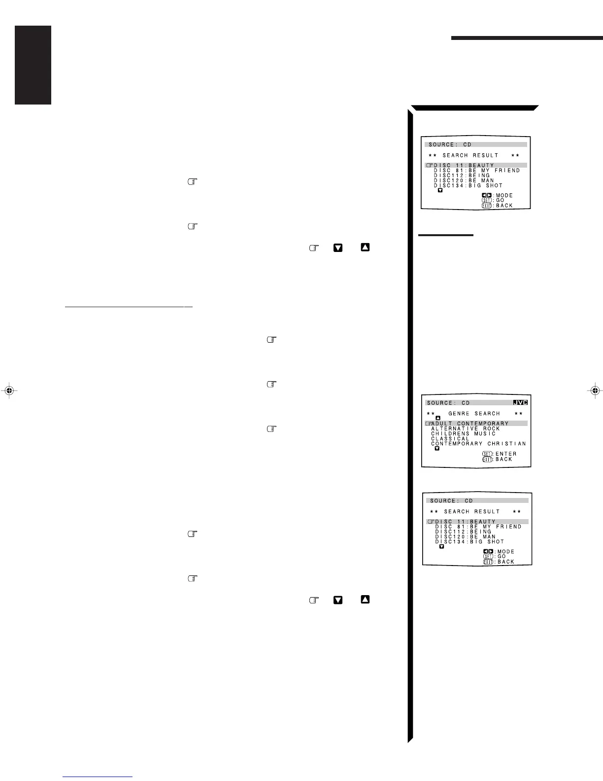 CONTROL % / fi to move to a searched disc, then press @ / #. Each time you