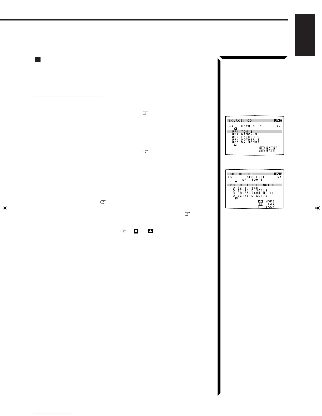 For the User File function, refer to the manual supplied with your CD player.