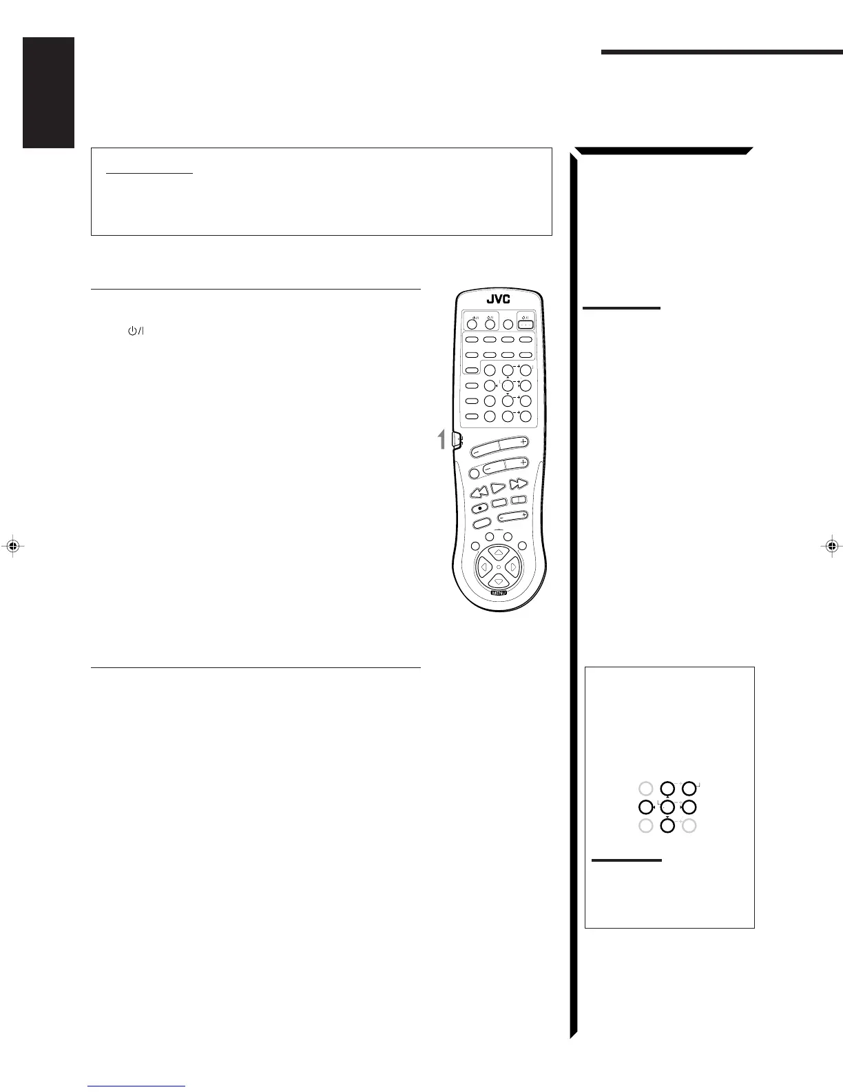 To operate JVC’s video components using this remote control: