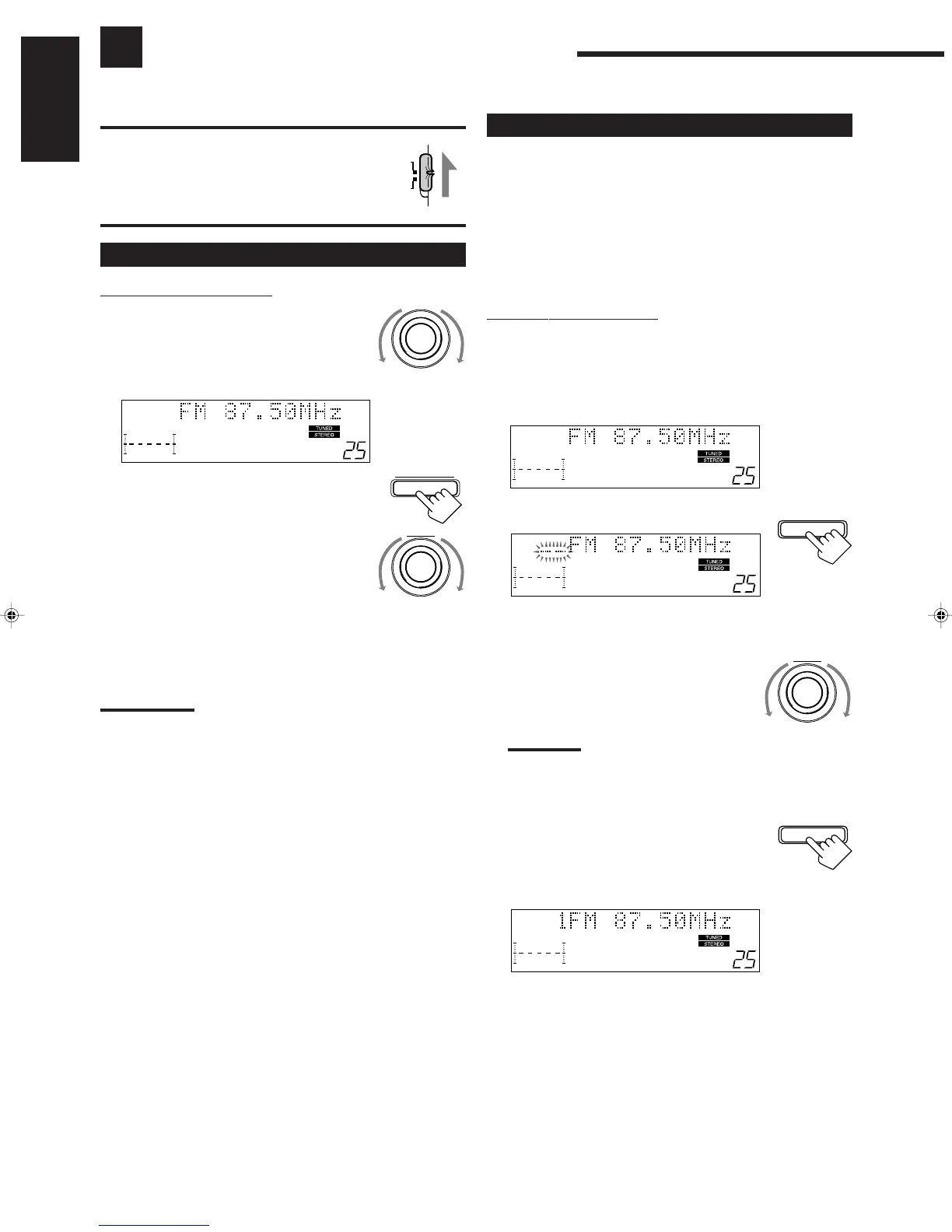 quickly tuned. You can preset up to 30 FM and 15 AM (MW/LW)