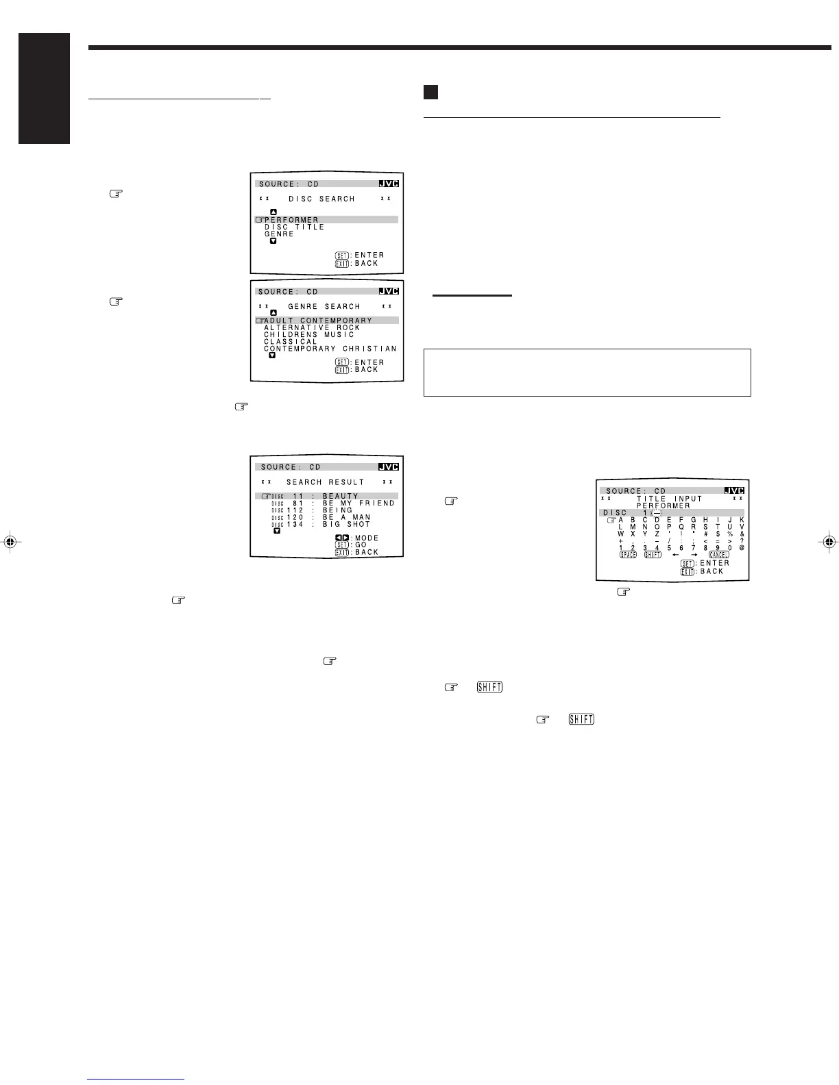 • Going back to the GENRE SEARCH screen: Press EXIT.