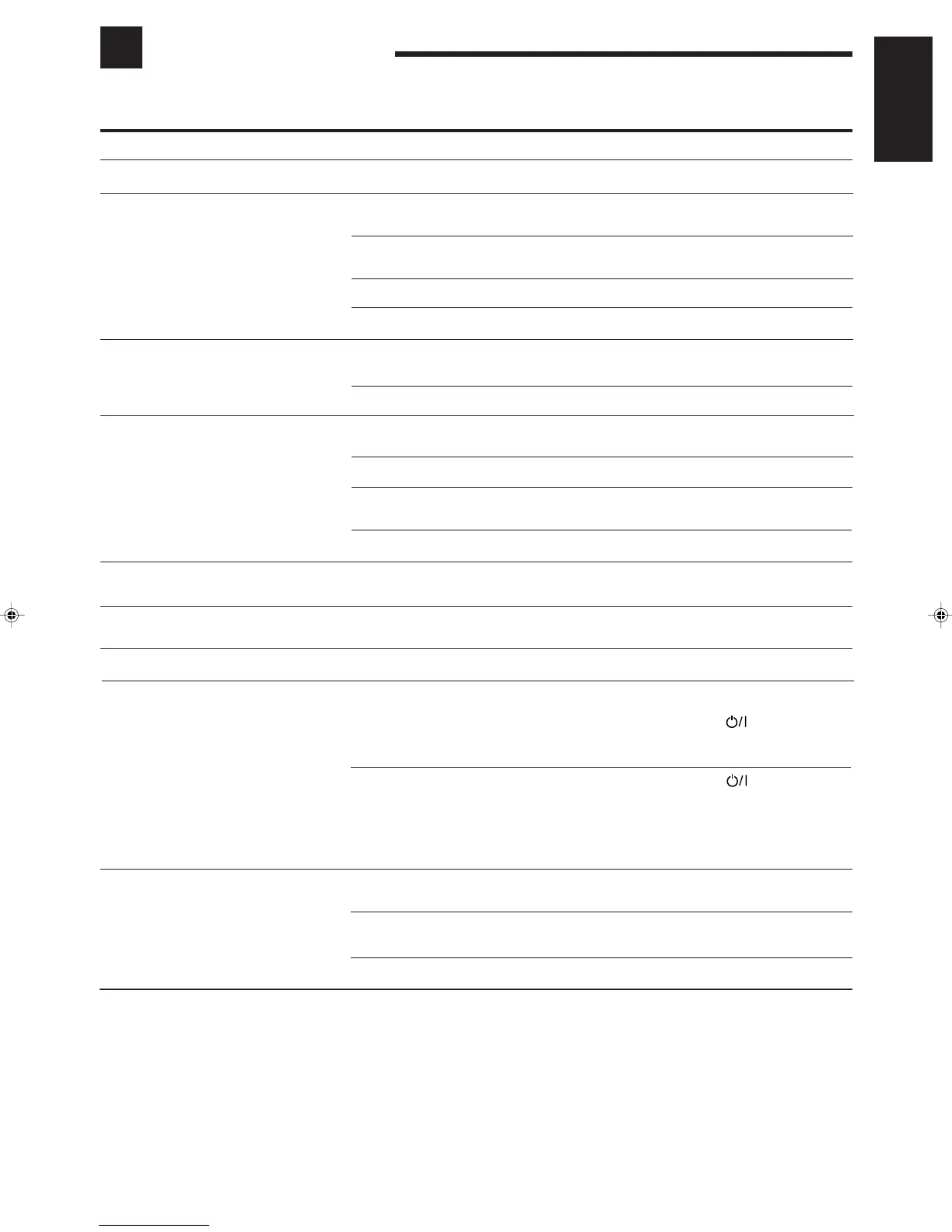 Use this chart to help you solve daily operational problems. If there is any problem you cannot solve, contact your JVC