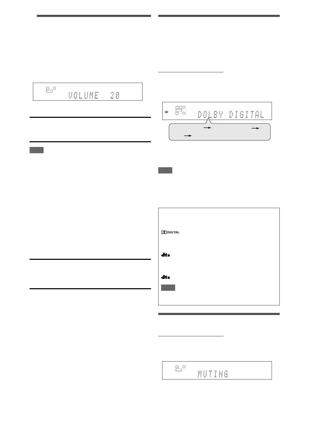 • Pressing VOLUME +/– (or turning MASTER VOLUME control