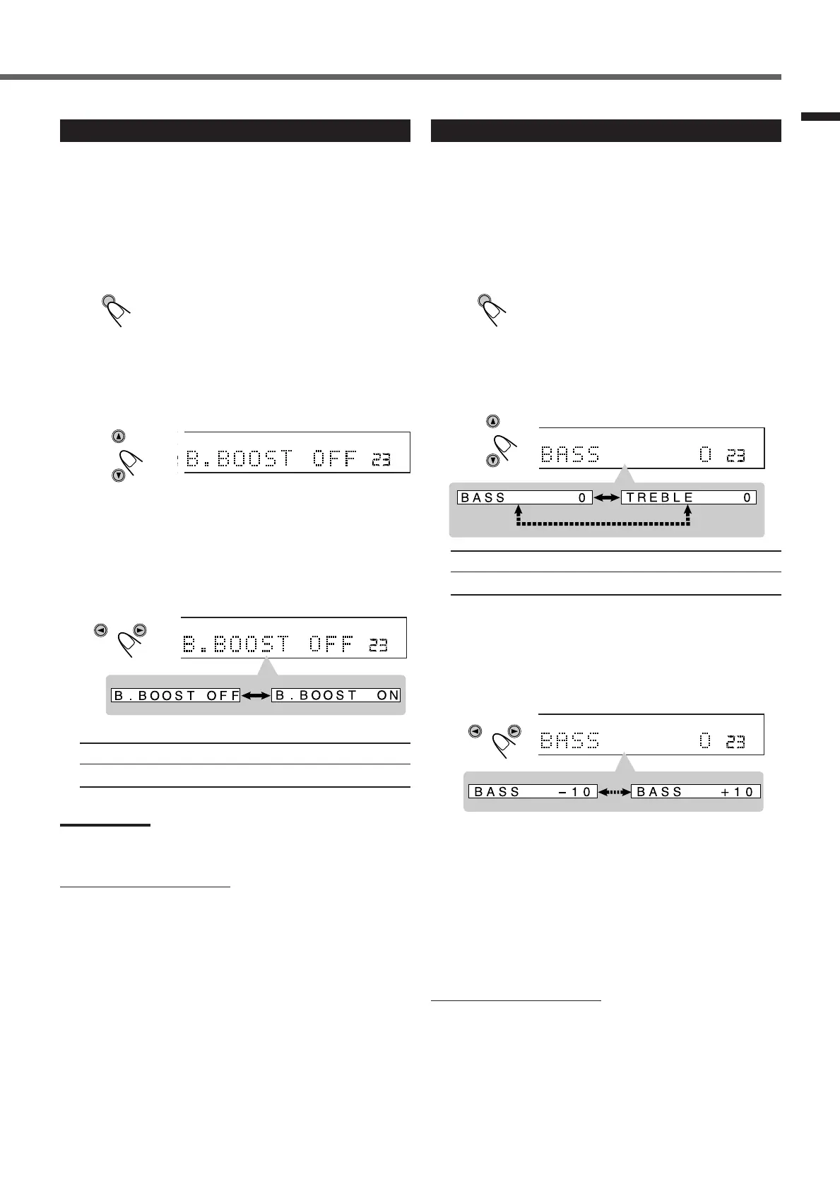 Press BASS +/– or TREBLE +/– to adjust the sound output level