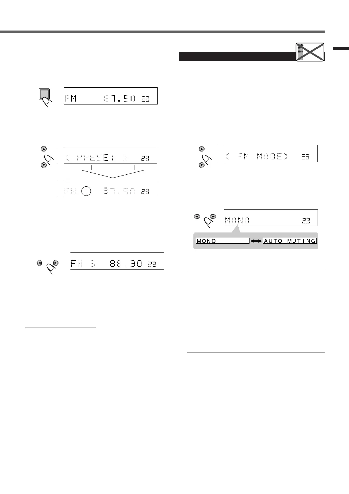 • Each time you press the button, the FM reception mode