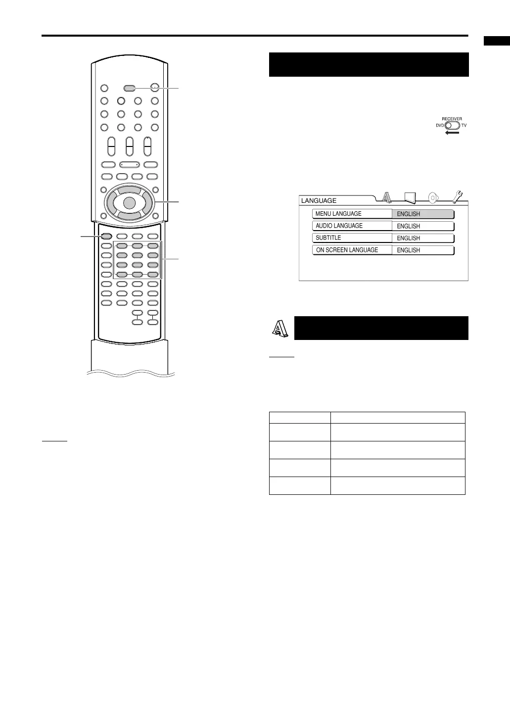 Selects the language for the DVD VIDEO