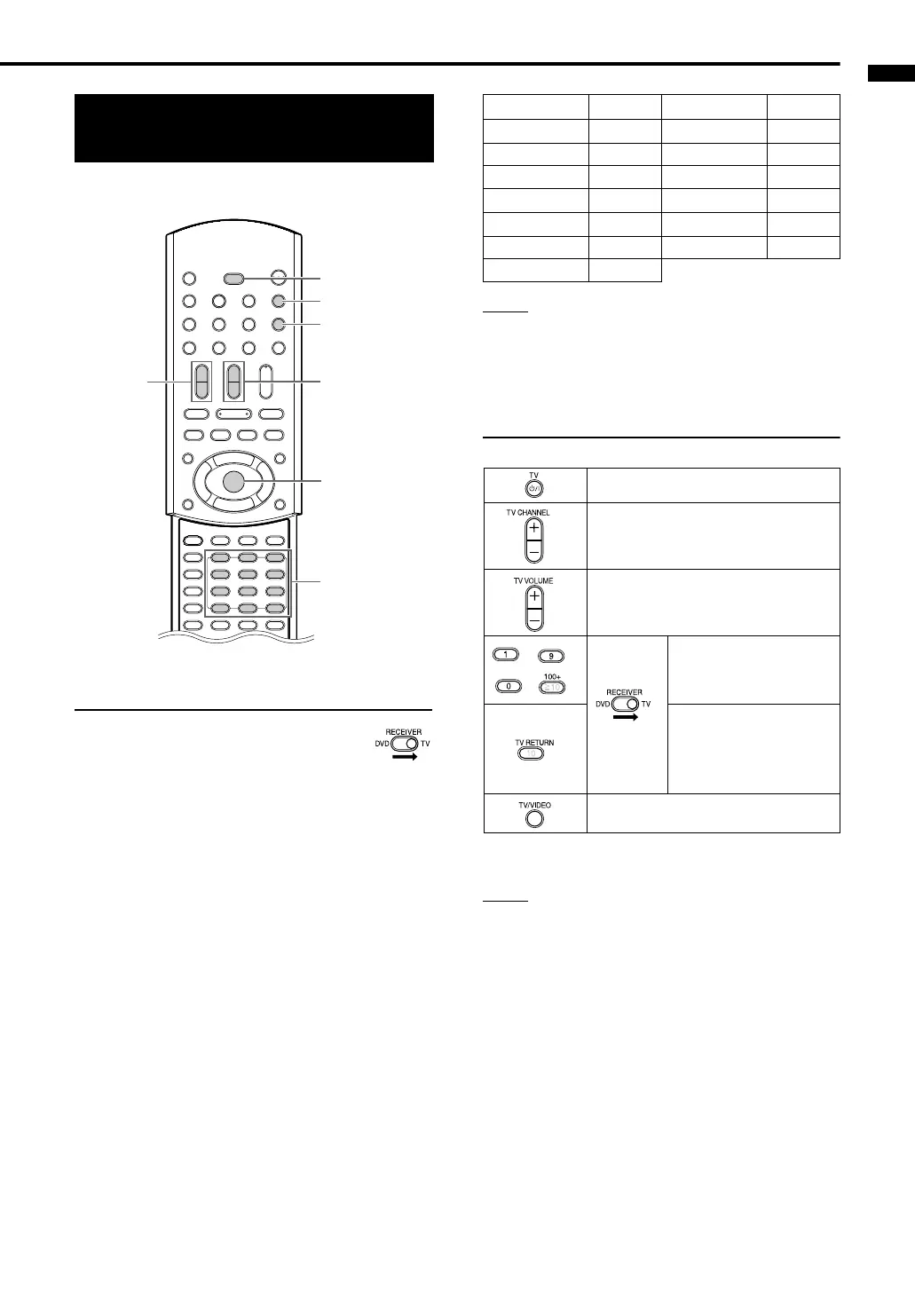 • When the remote control mode selector is slid to TV,
