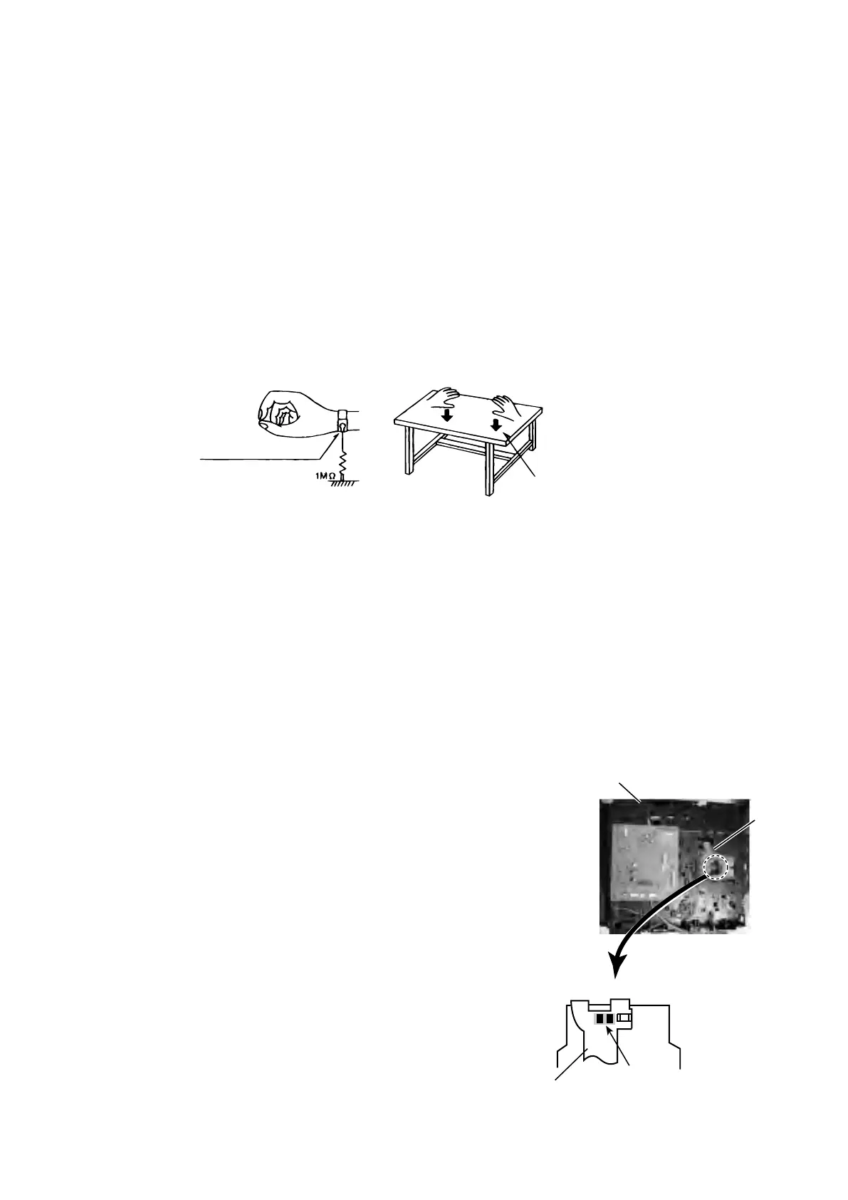 can destroy the laser diode in the traverse unit (optical pickup). Take care to prevent this when performing repairs.