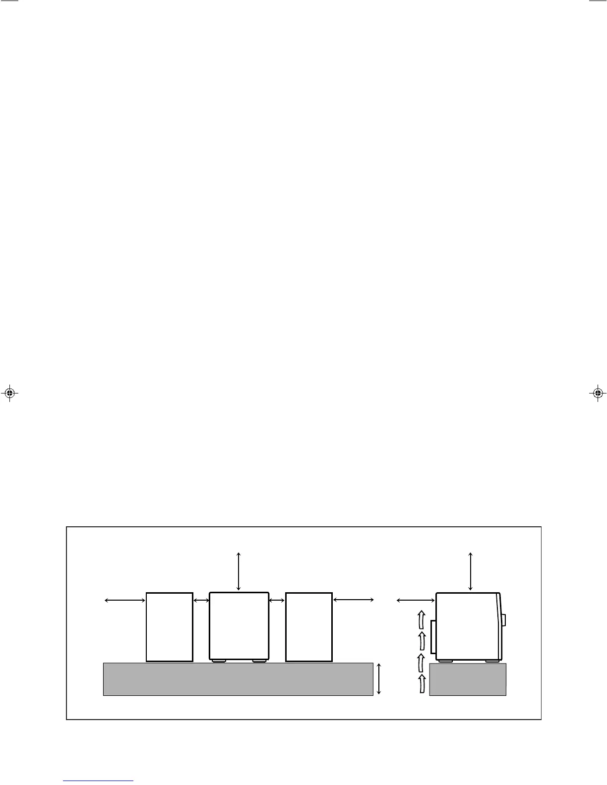 para ello, coloque el aparato sobre una base a una altura mínima de 10 cm.