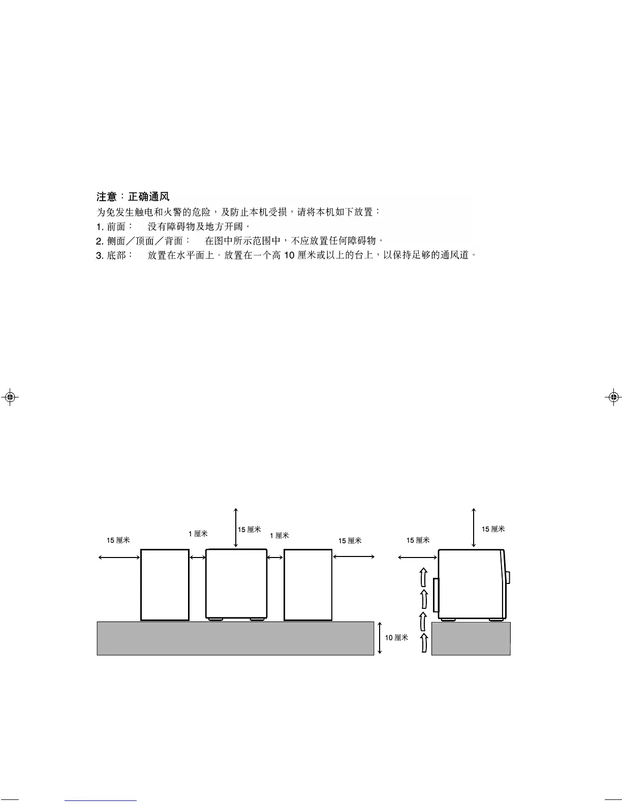2 Sides/ Top/ Back: No obstructions should be placed in the areas shown by the dimensions below.