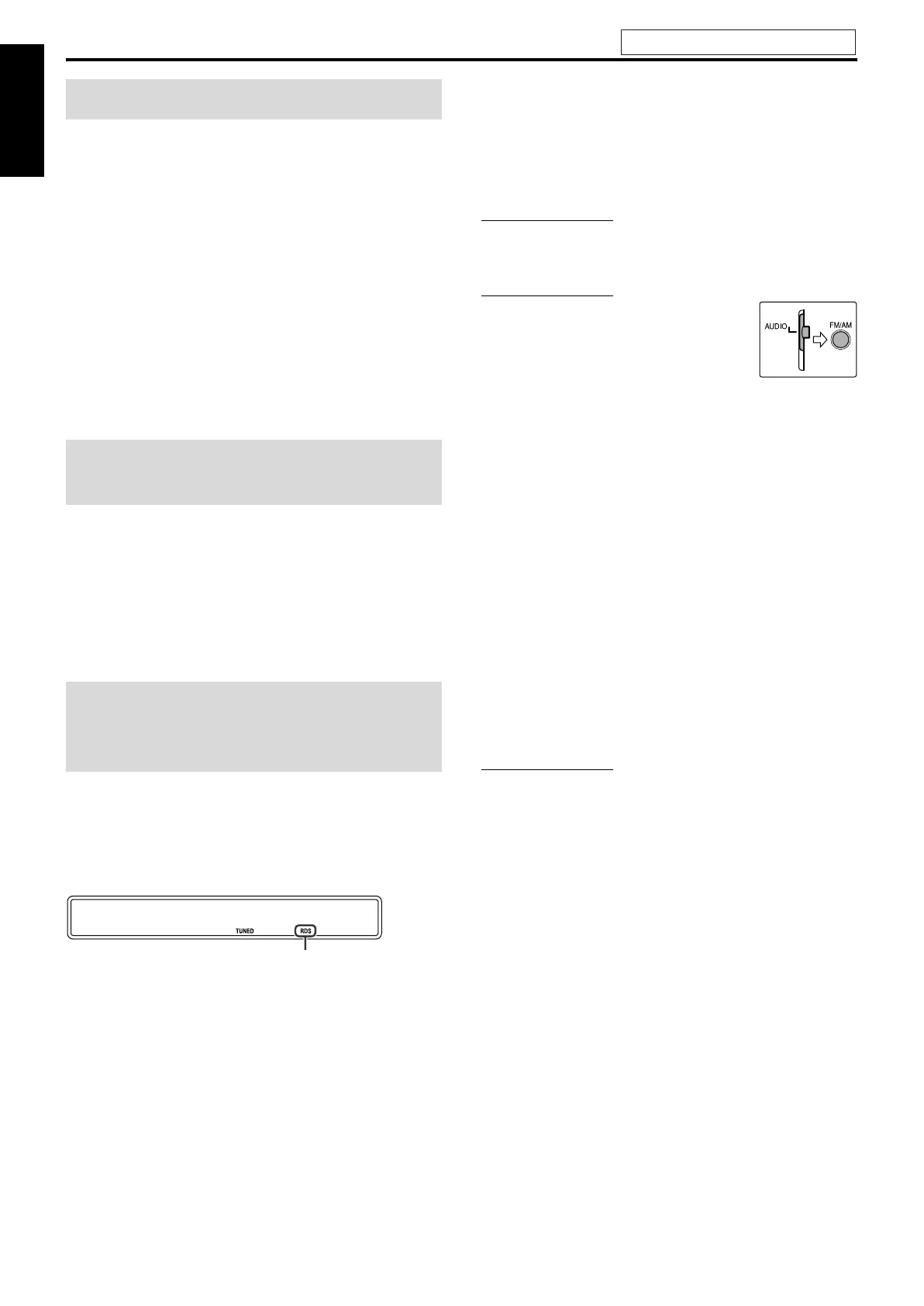• RDS är inte tillgängligt för AM (MV)-sändningar.