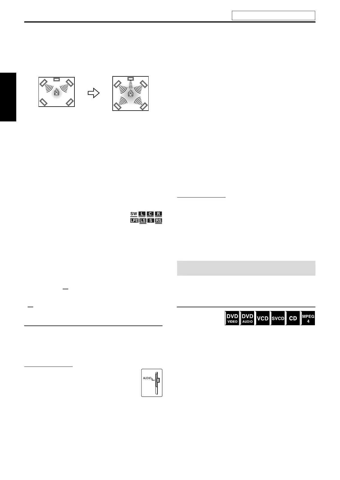 • Huomaa, että SURROUND-moodi ei vaikuta lainkaan MPEG4-