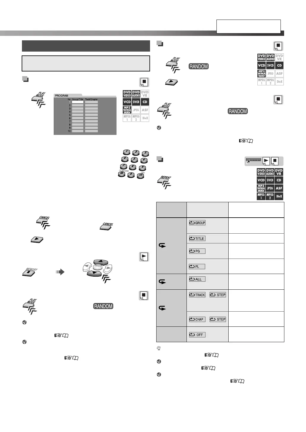 • For DVD Video, DVD Audio,