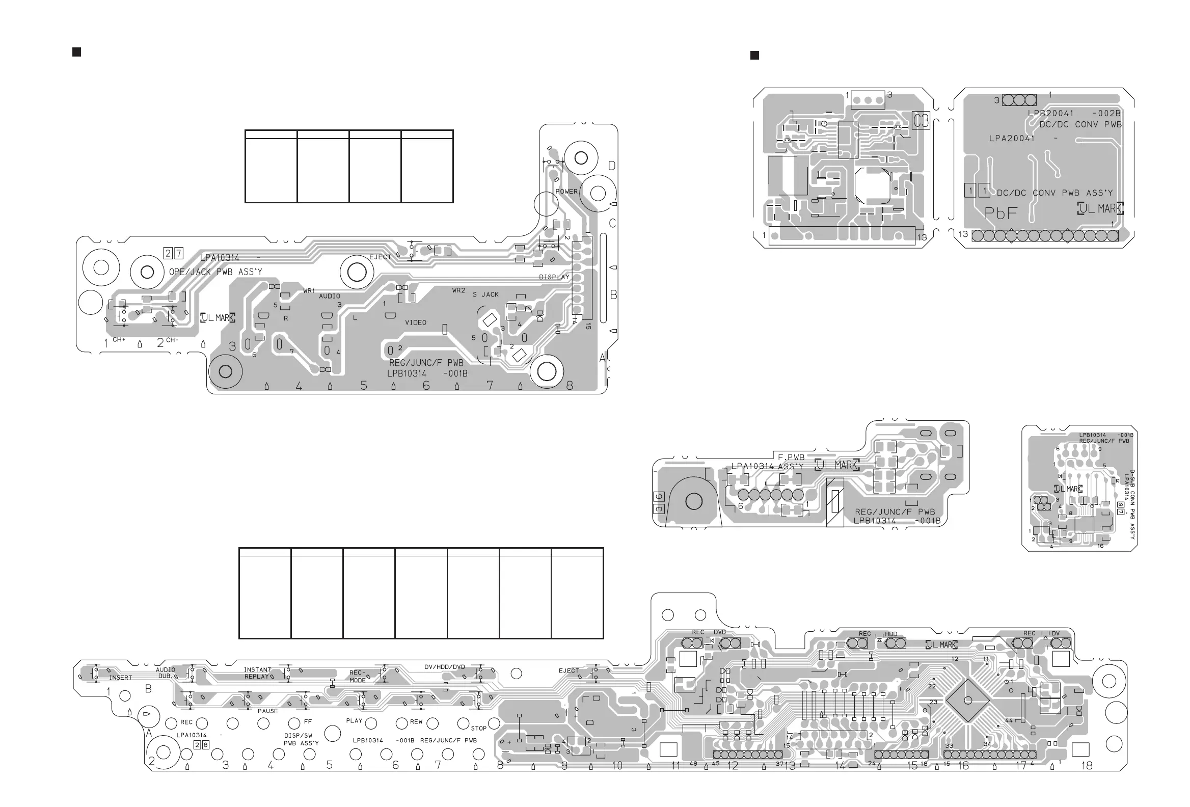 Jack, Operation/Jack, Display/Switch and D-Sub board