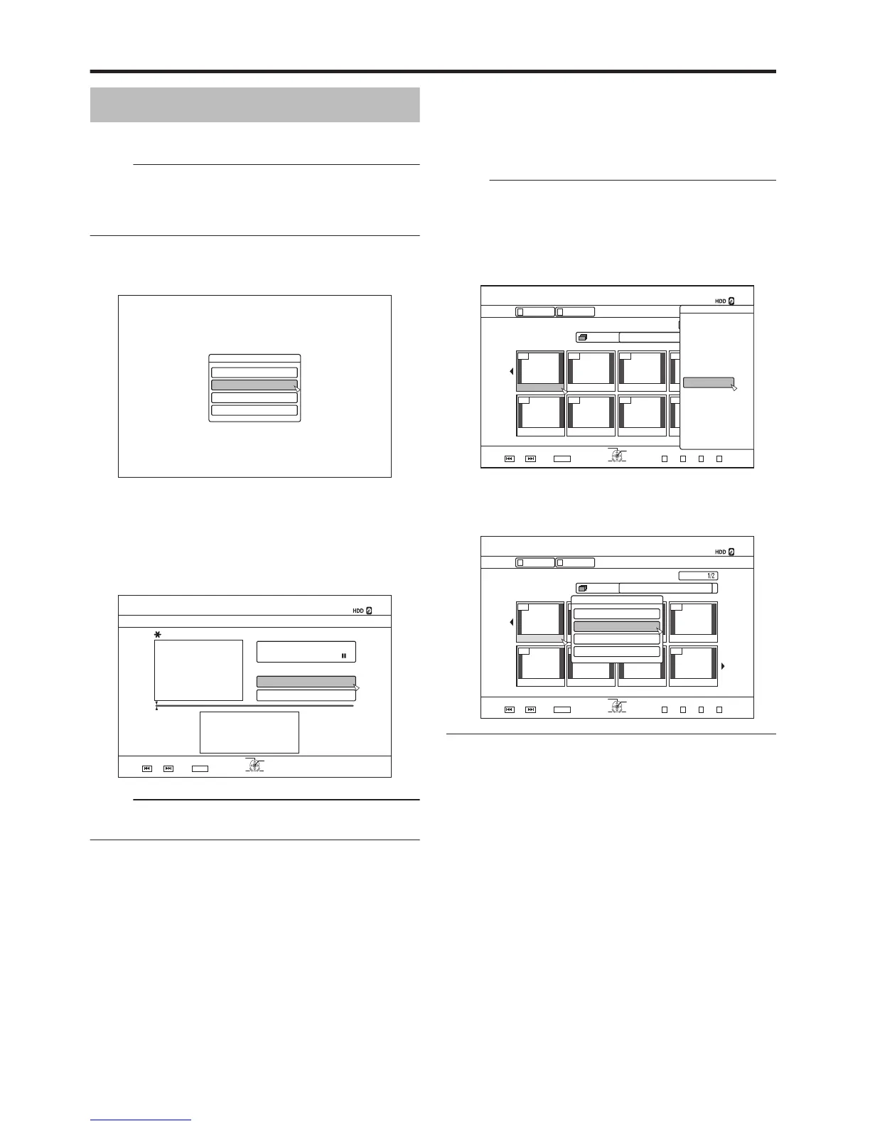 Thumbnails of titles stored on the HDD, BD-RE, BD-R,