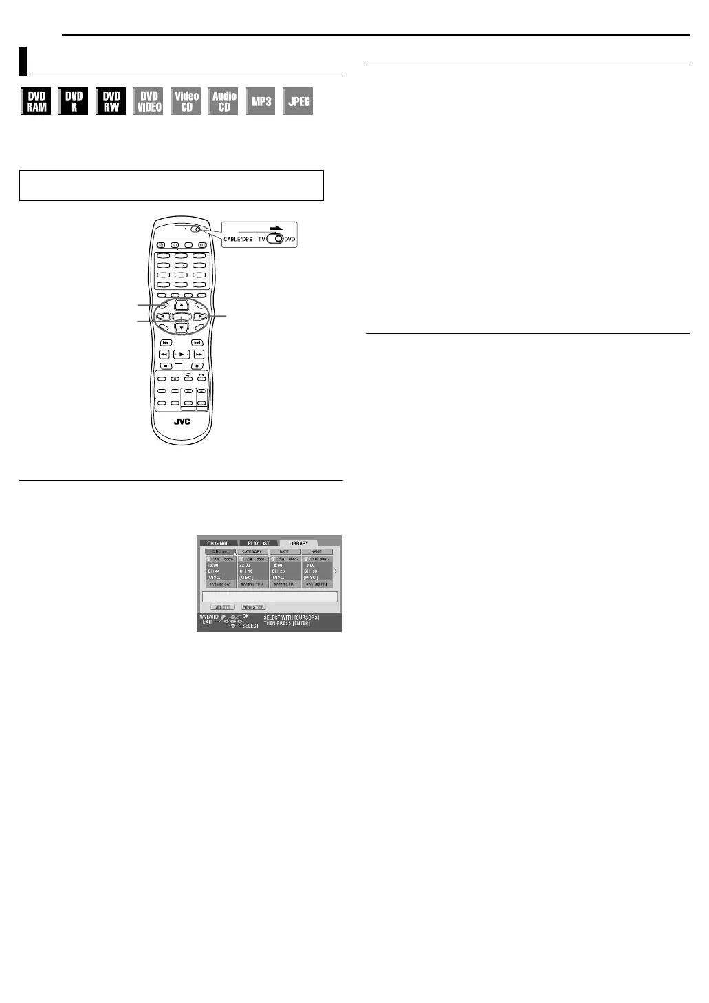 ● It is not possible to register discs when “SAVE AS LIBRARY” is set to