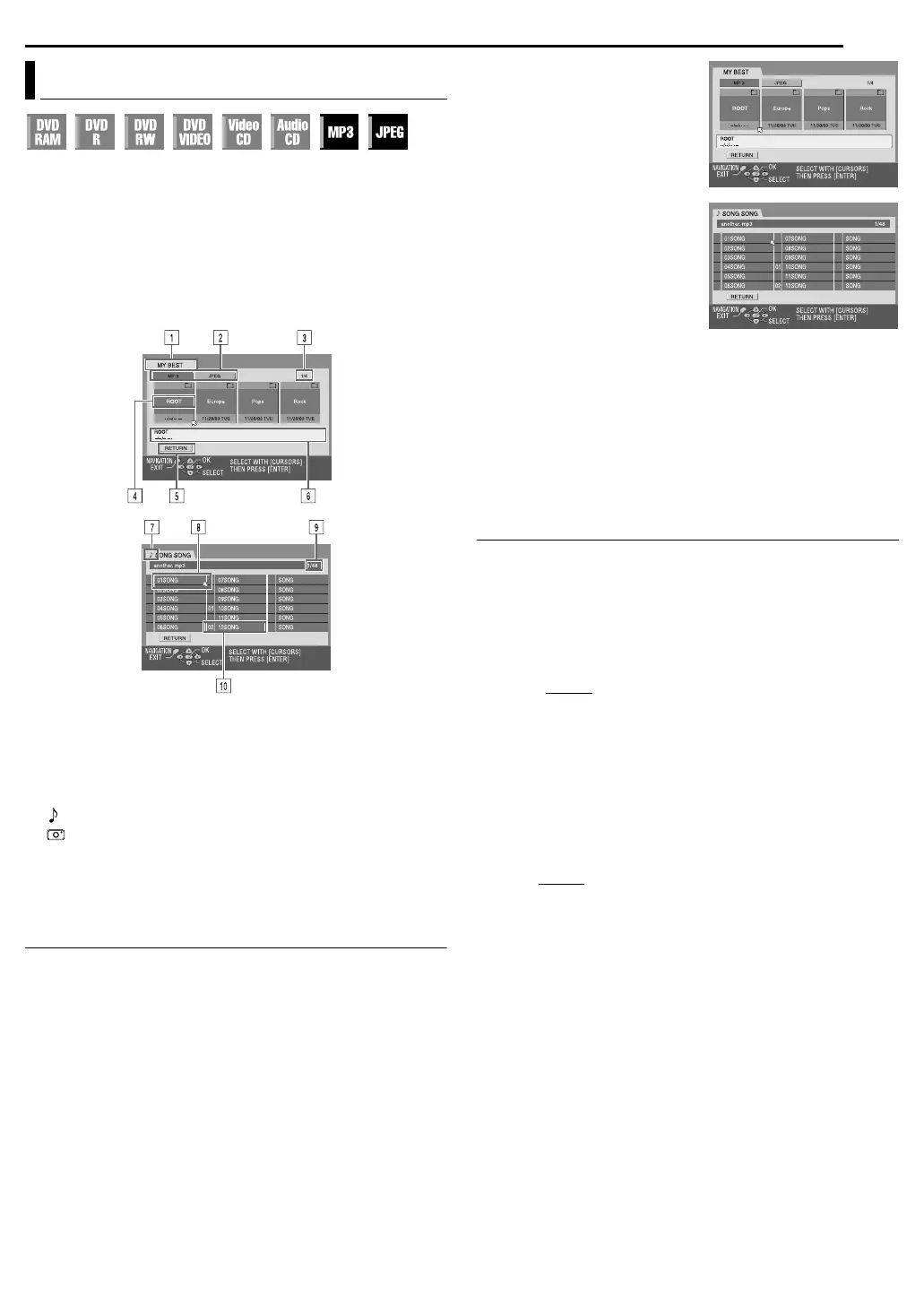 B Sort buttons (“MP3”⁄ “JPEG”)
