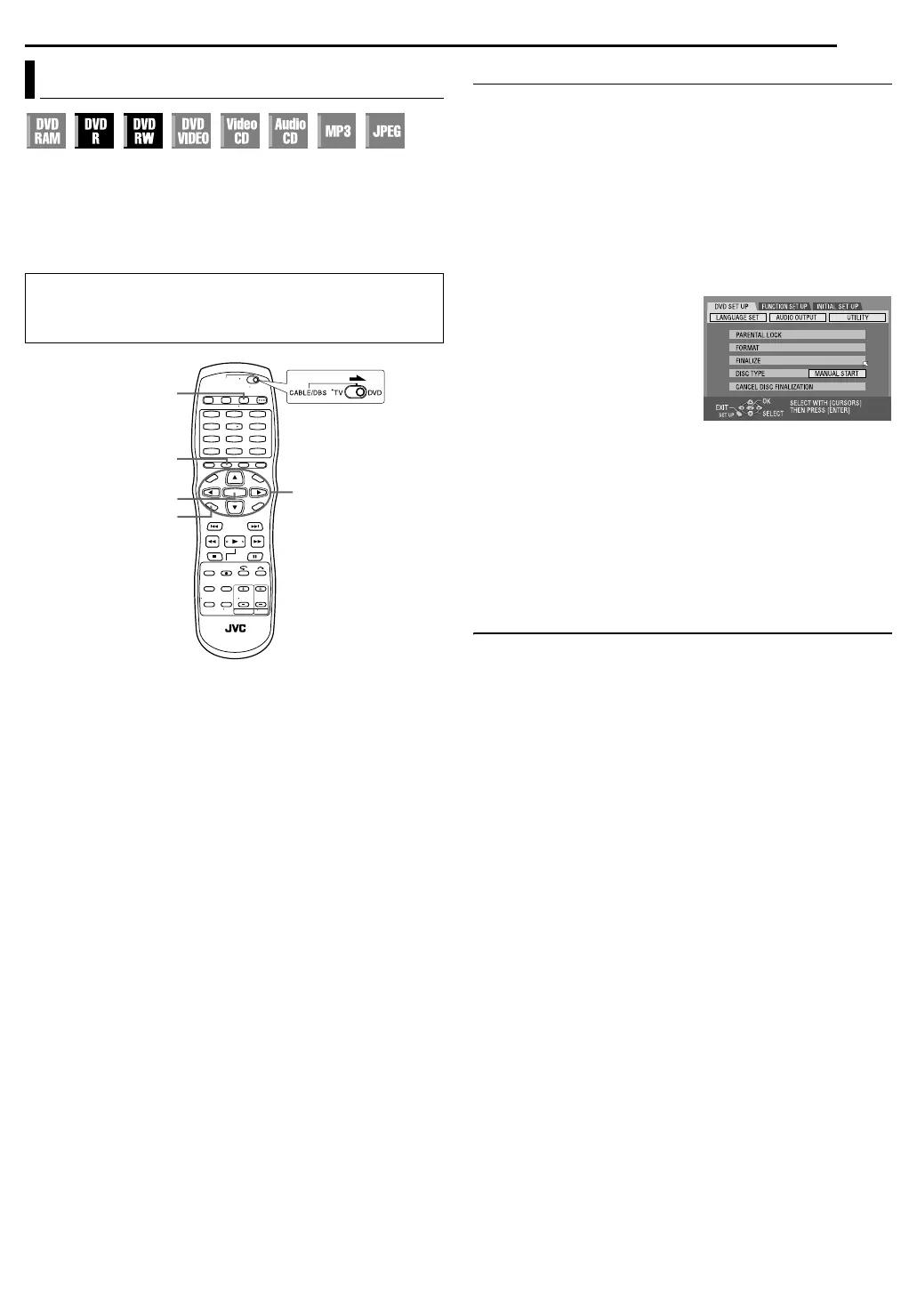 ● Once a DVD-R/RW (Video mode) disc has been finalized, the