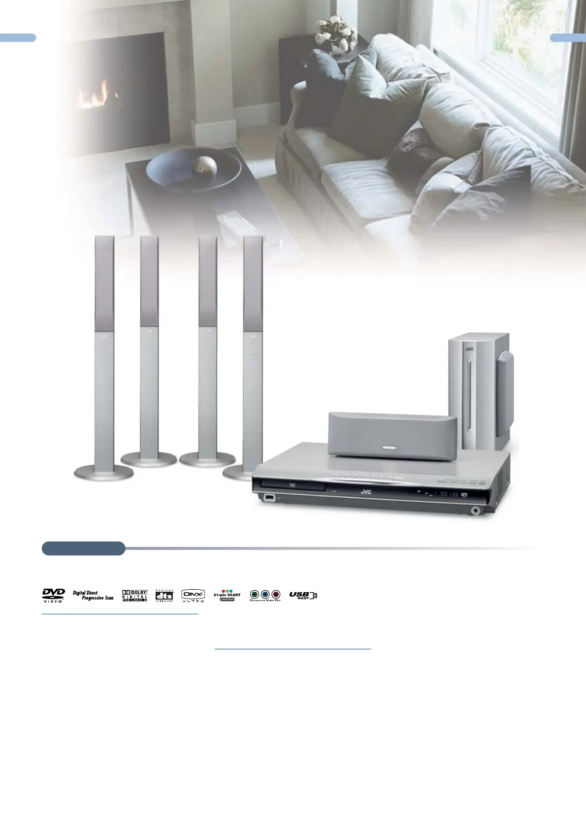 WMA/MP3/DivX compatibel Cinema System met 4 vloermodel 2-weg voor en surround luidsprekers met instelbare hoogte/muurmontage,