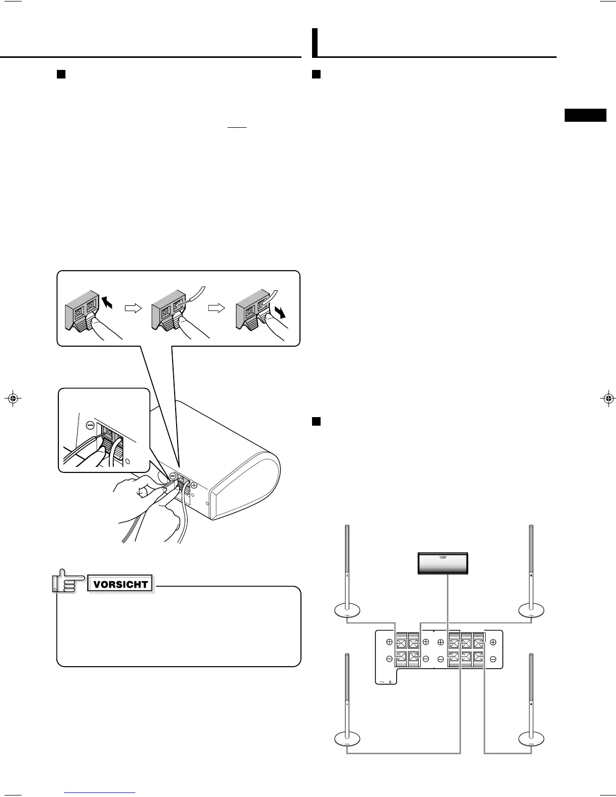 • Beim Anschließen der Lautsprecherkabel sicherstellen, dass