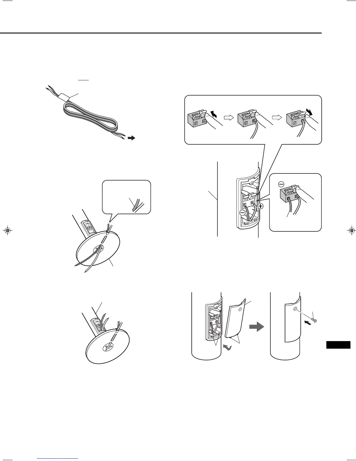 • Træk højttalerledningen omkring 50 cm ud af standerens