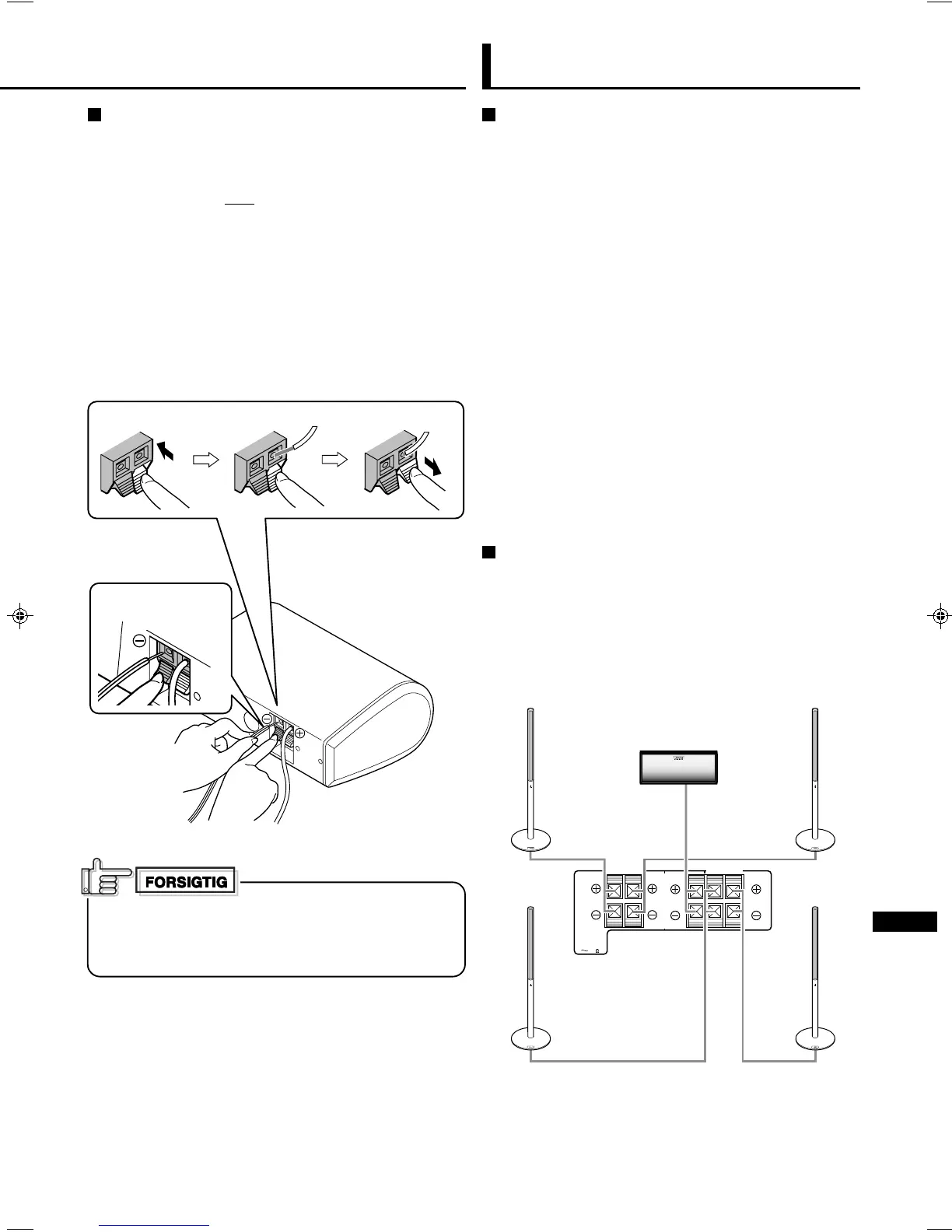 • Hver højttalers impedans er på 8 Ω. Kontroller din forstærkers