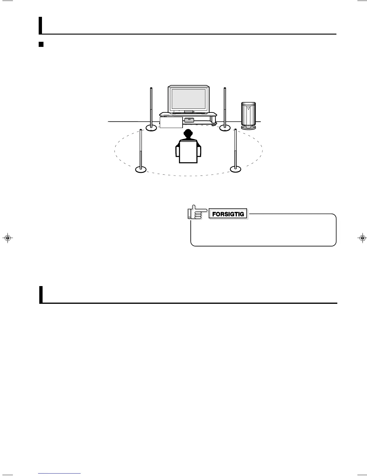 • Normalt anbringes centerhøjttaleren tæt på tv’et.