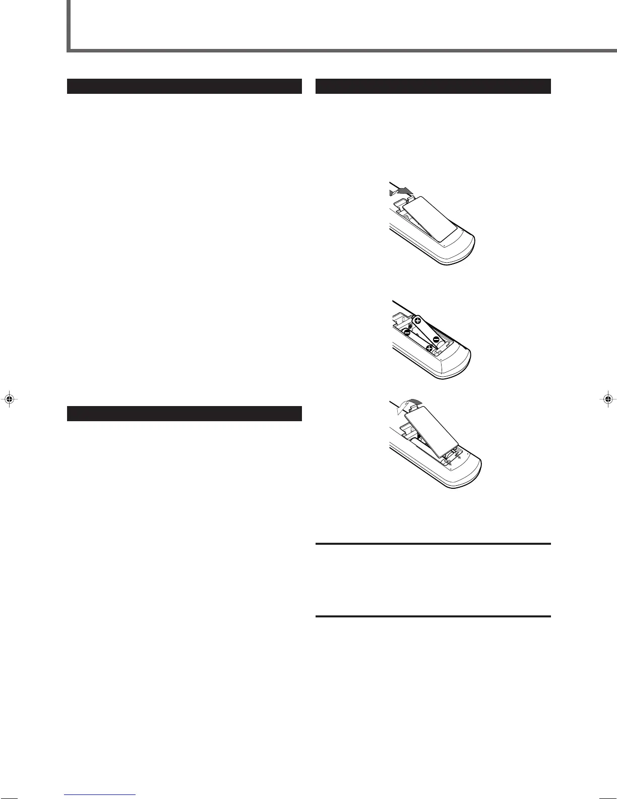 • Place batteries in the remote control so they match the polarity: (+)