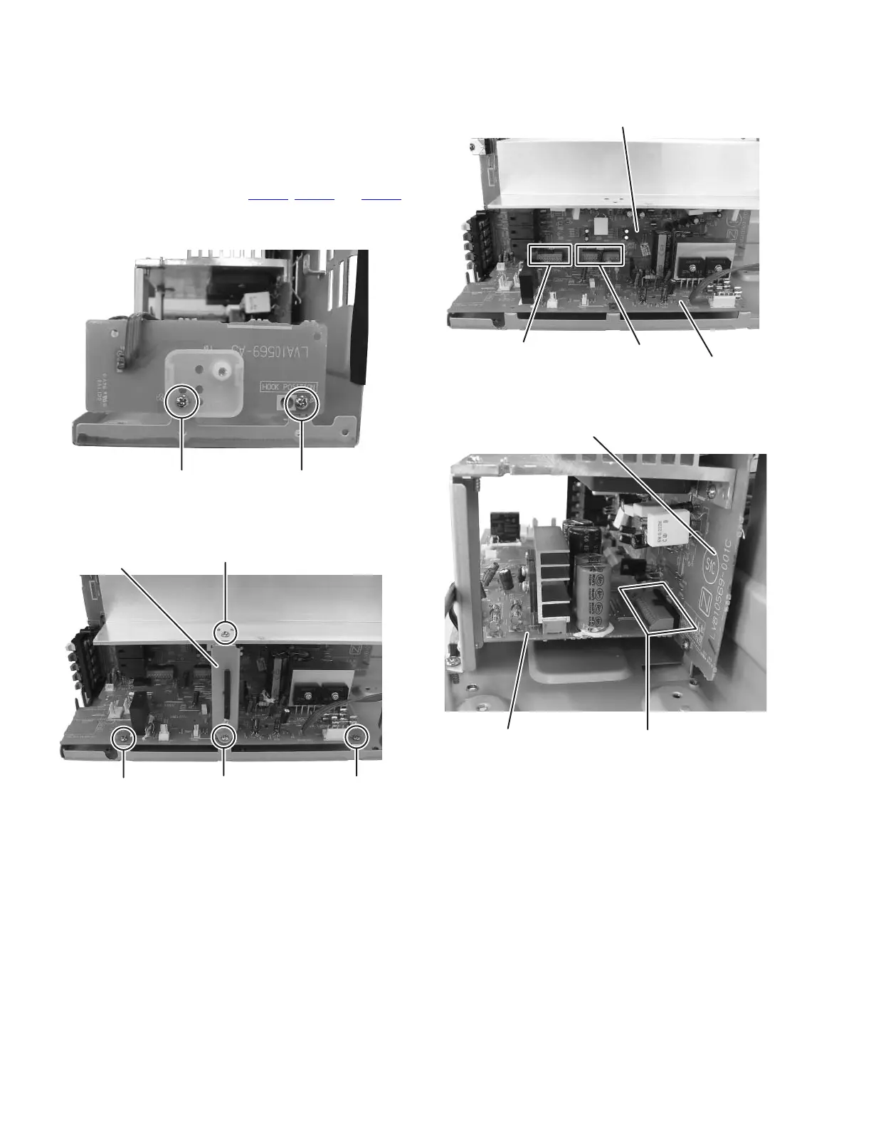(1) Remove the two screws F attaching the LED board. (See