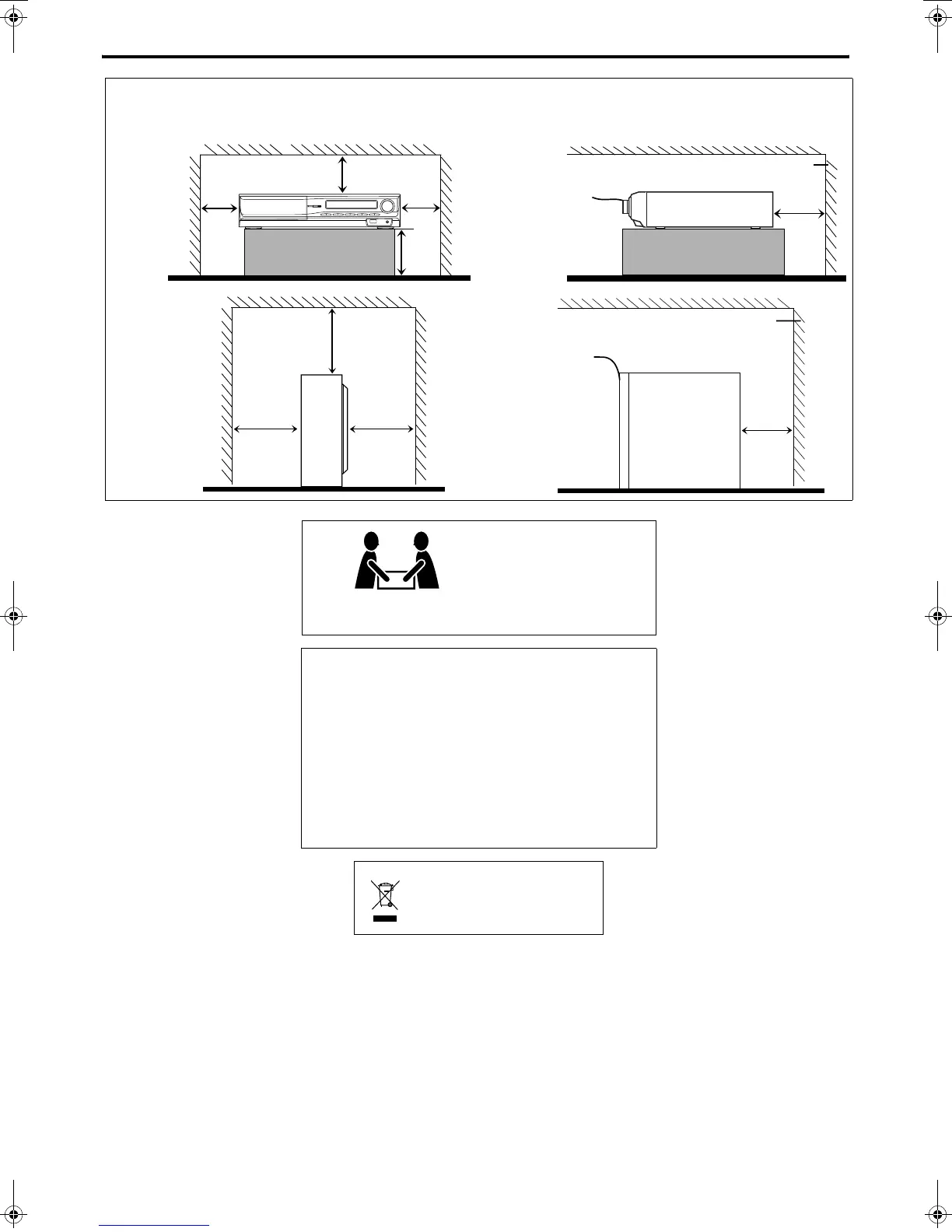 To avoid risk of electric shock and fire and to protect from damage, place the apparatus on a level surface. The minimal clearances are