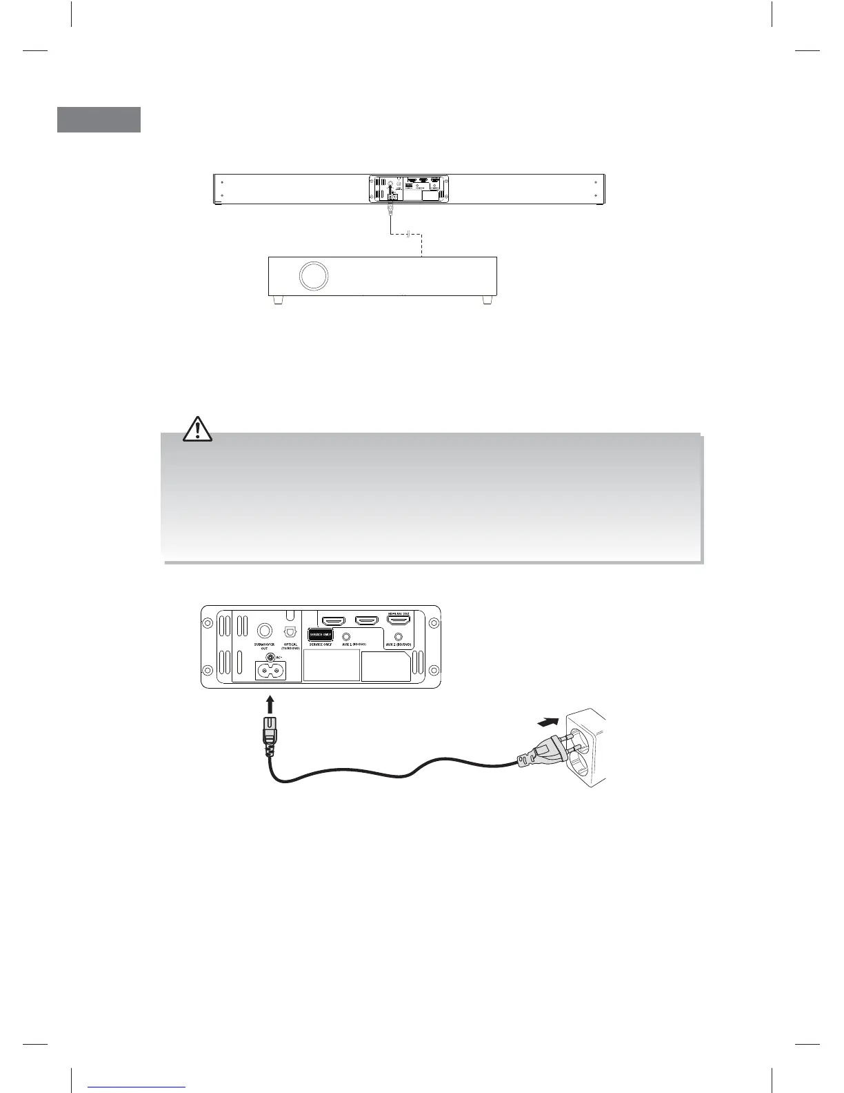 The soundbar is designed to operate with the supplied mains cable.