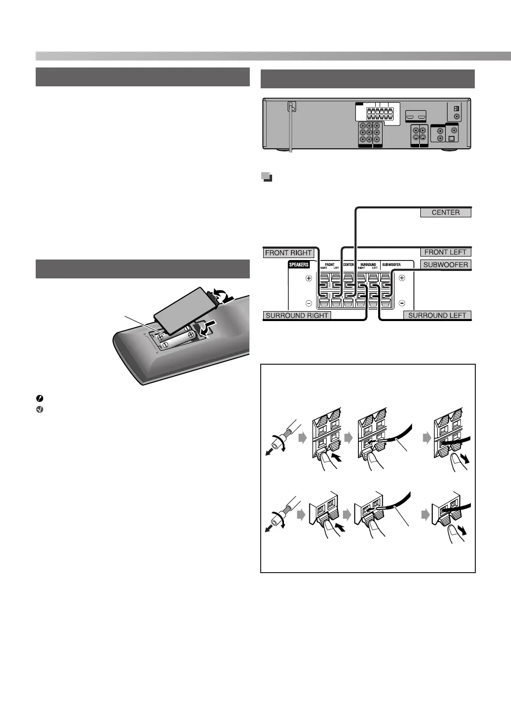 JVC TH-D6 - 着 手準備; 檢查附件; 將電池裝入遙控器; 連接揚聲器和超重低音揚聲器