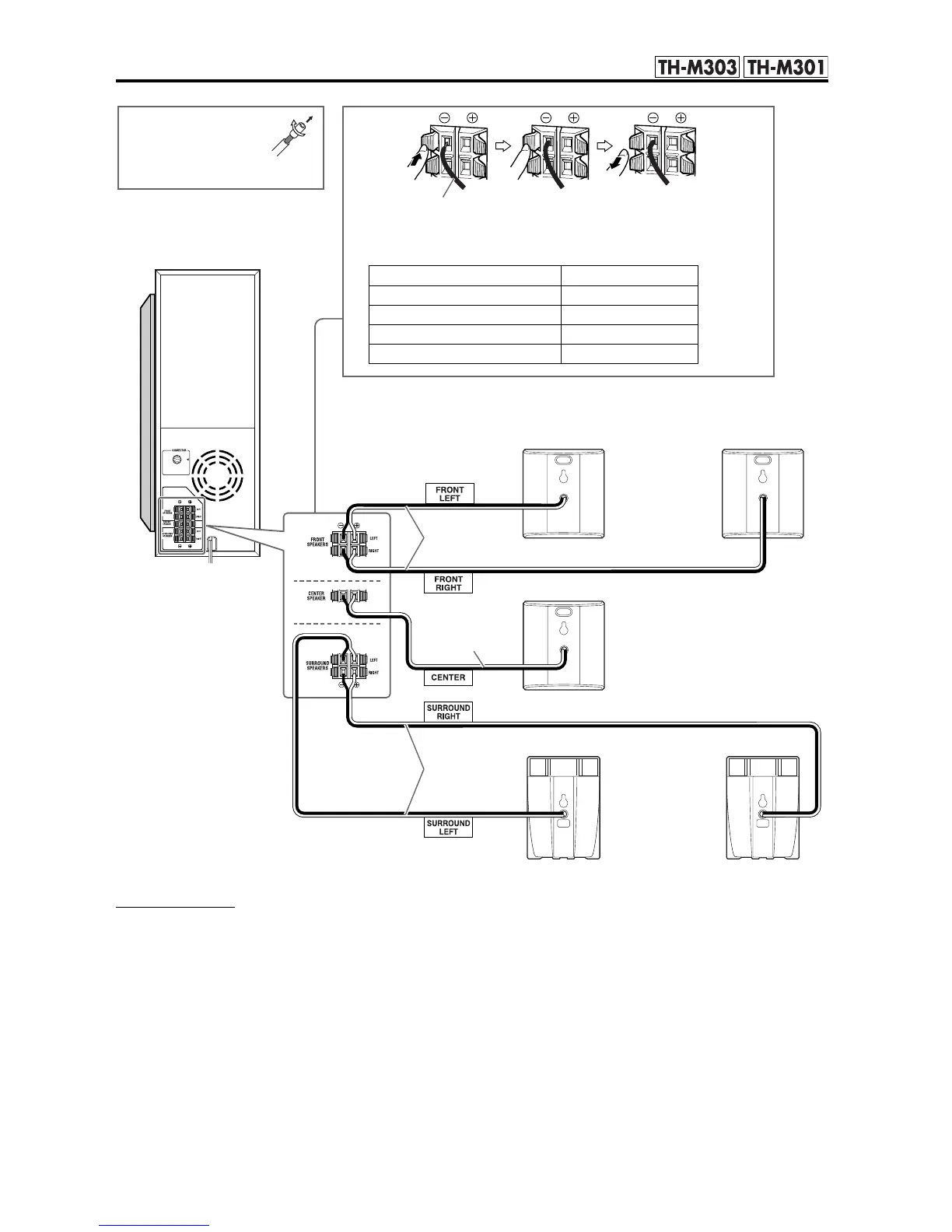 • Connect the copper cords to the (q) terminals referring to the table below: