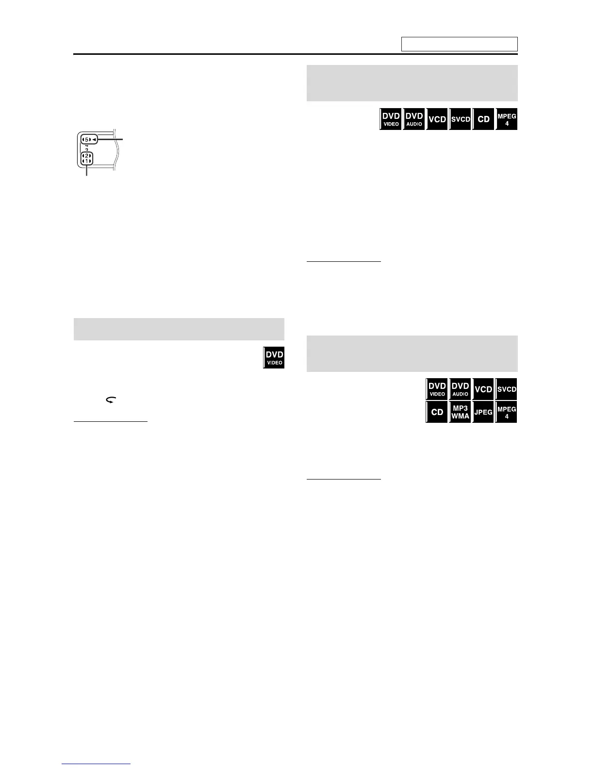 • When a DVD VIDEO, VCD, SVCD, or MPEG4 disc is played back,