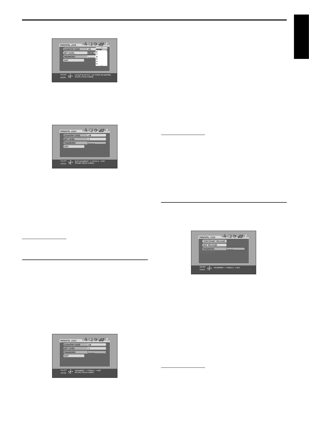 password in step 6, the new country code and parental lock level will