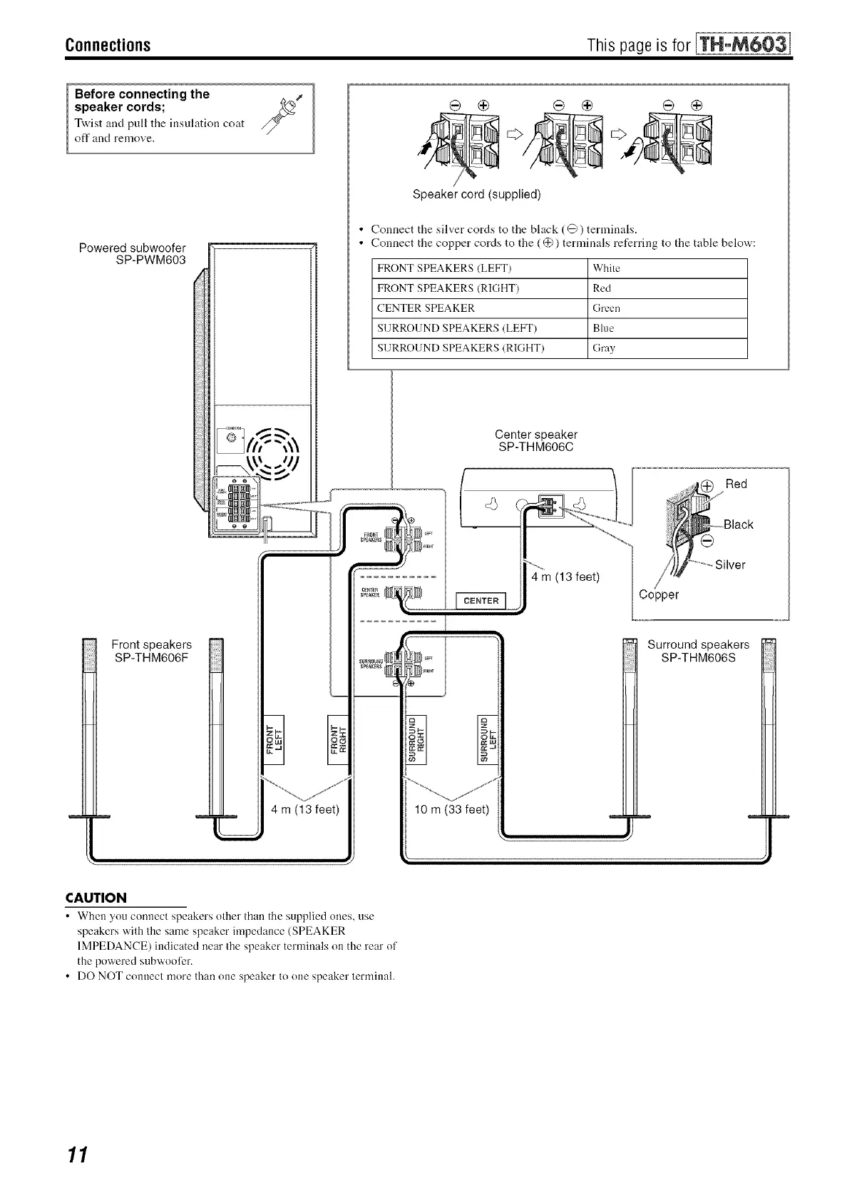 IMPEDANCE) indicated near the speaker terminals on the rear of