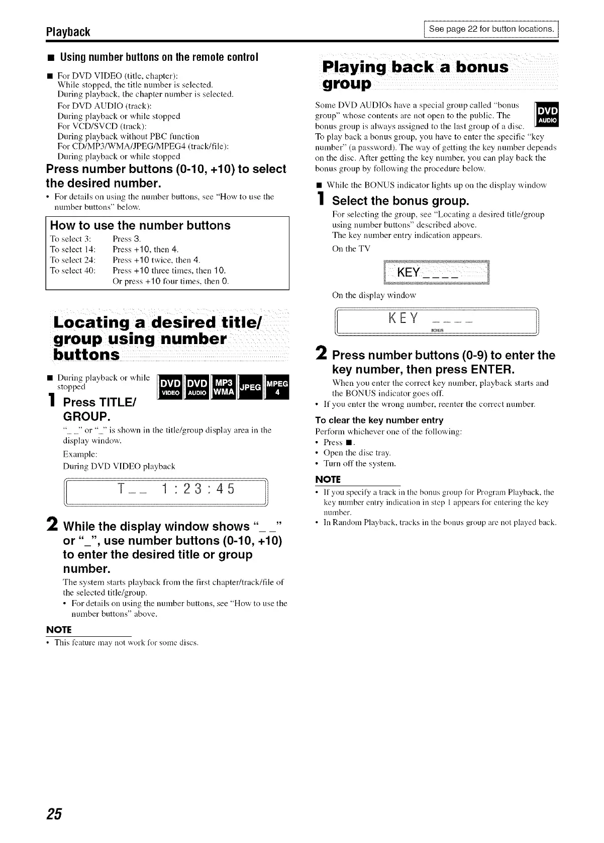 To play back a bonus group, you have to enter the specific "key
