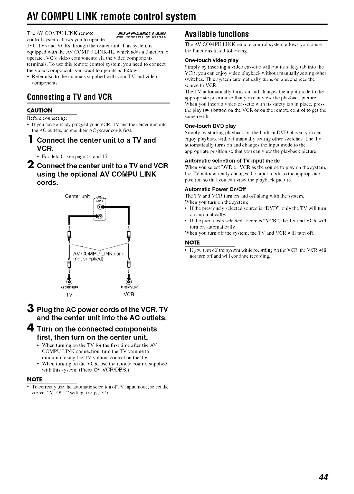 JVC TVs and VCRs through the center unit. This system is