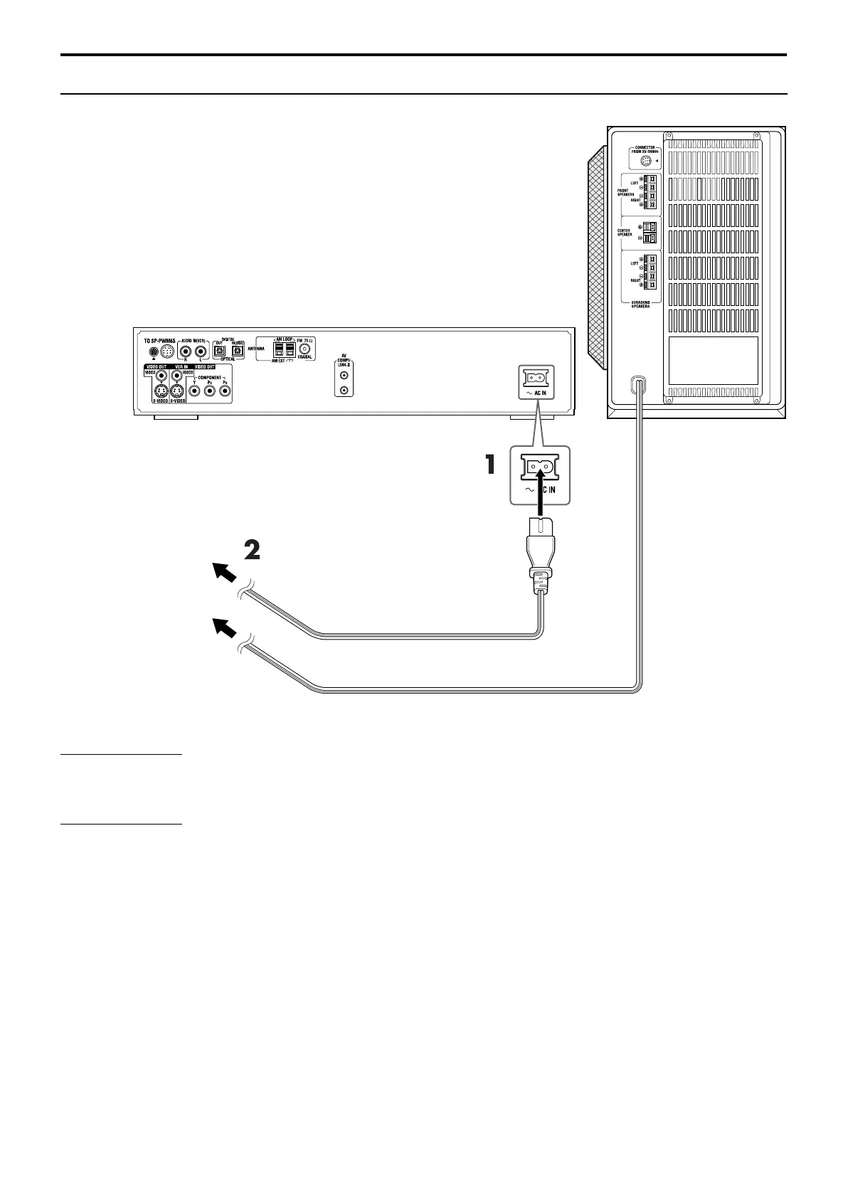 Firmly insert the supplied power cord into the Ó AC IN socket on the rear of the center