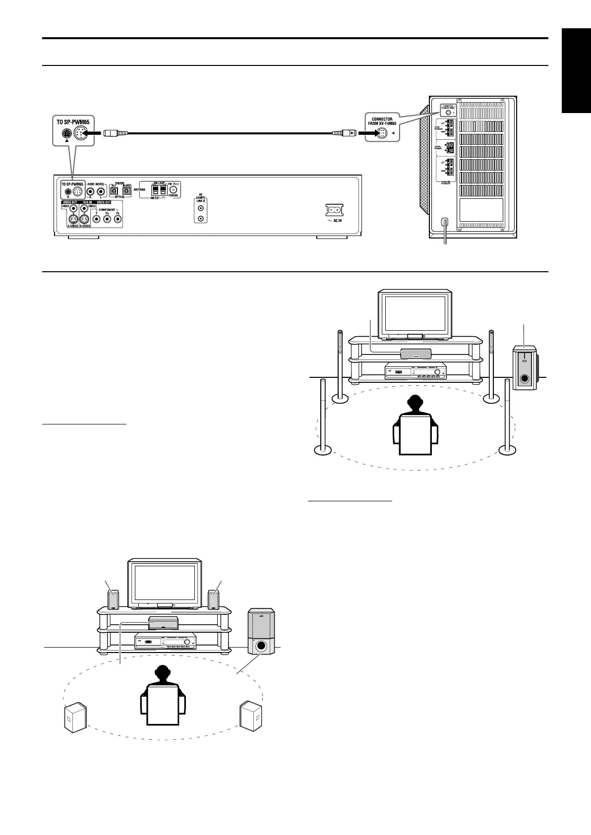 Connect the supplied powered subwoofer (SP-PWM65/SP-PWM55/SP-PWM45) using the system cord (supplied).