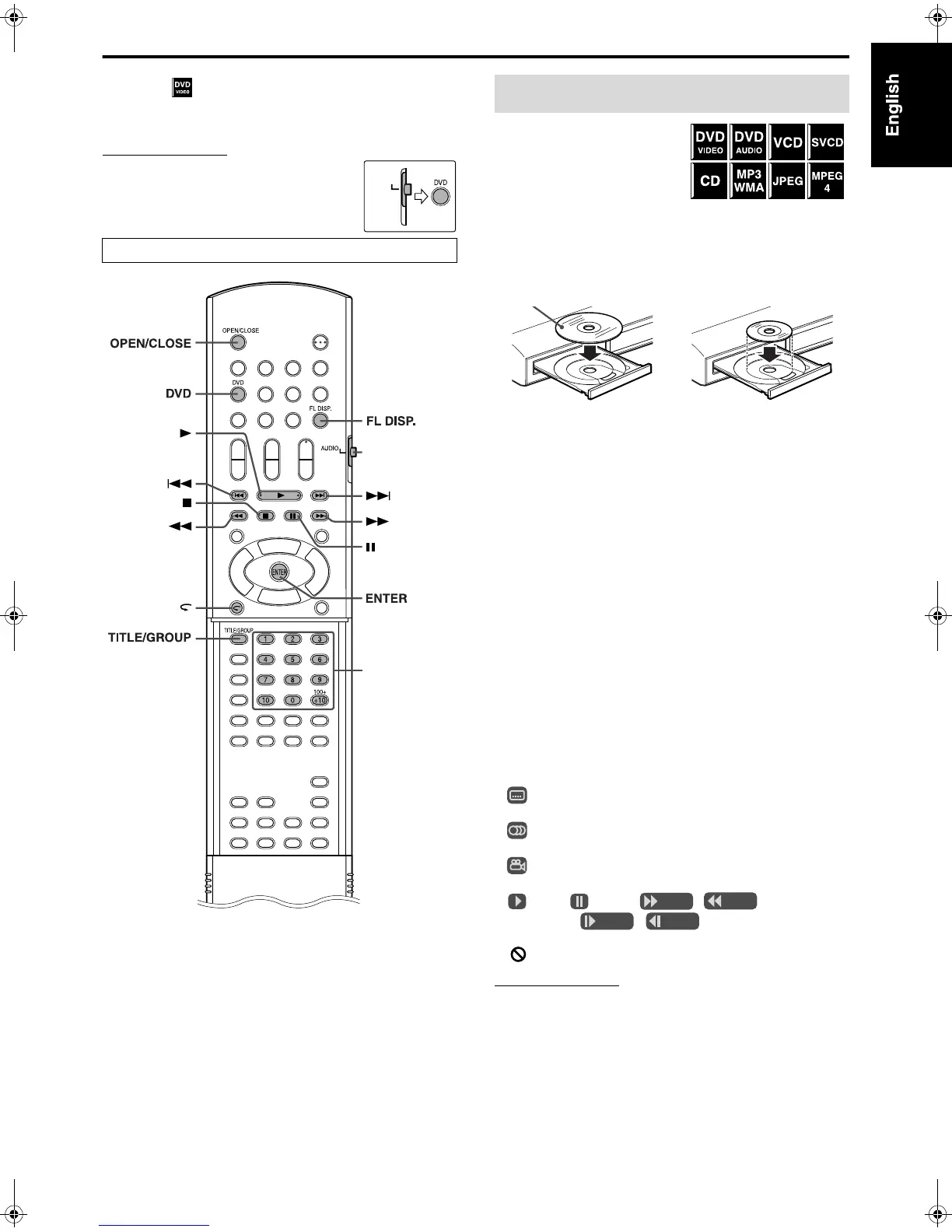 • The mark shows the types of discs the operation is available