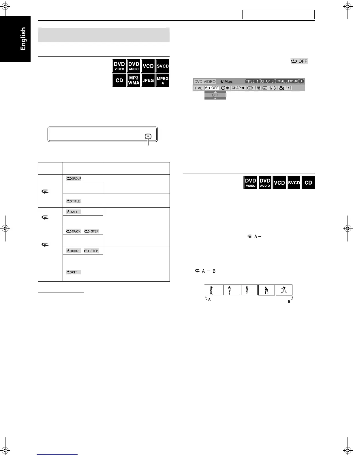 • For DVD VIDEO and DVD AUDIO, REPEAT ALL may not be