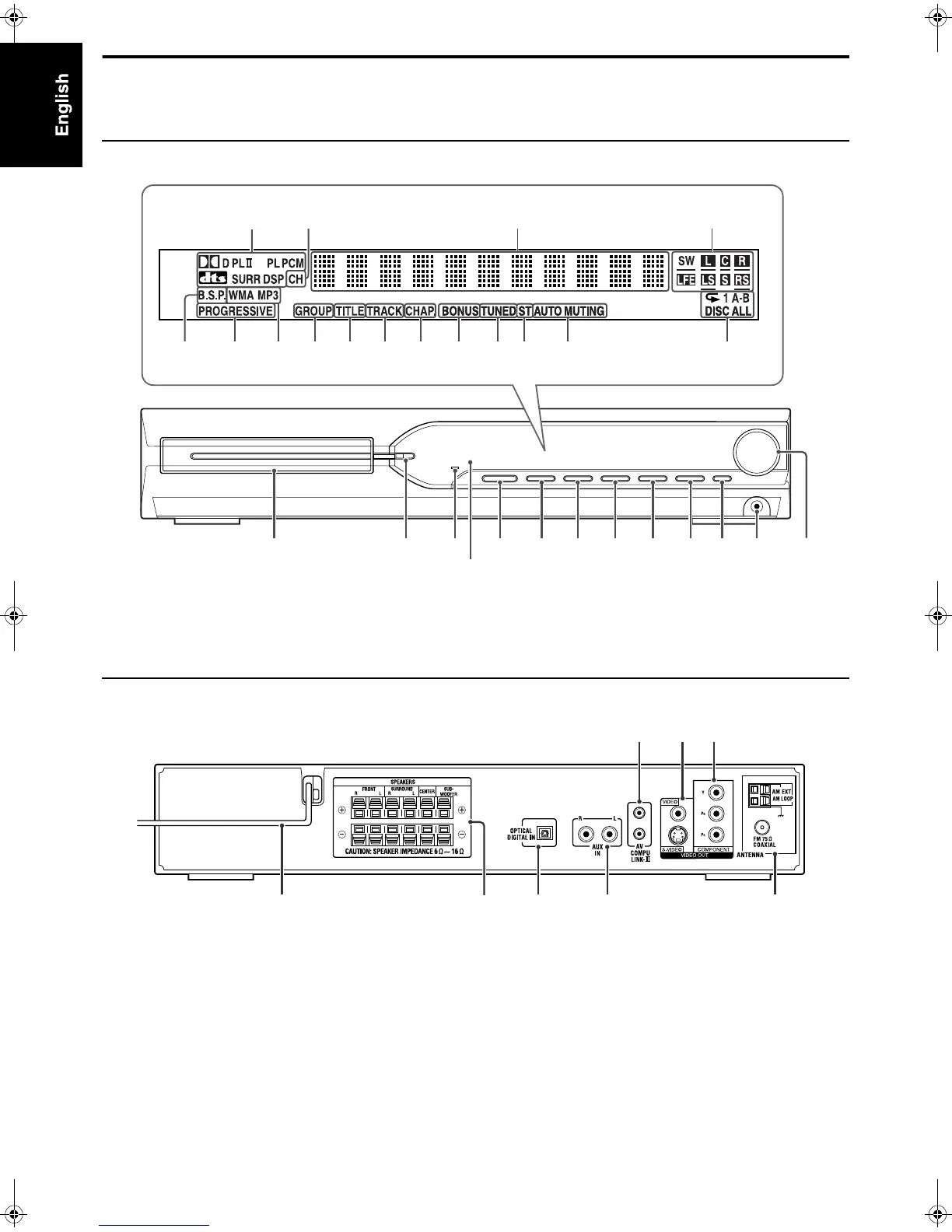 JVC TH-S3 TH-S2 - Index of Parts and Controls; Front Panel (Center Unit); Rear Panel (Center Unit)